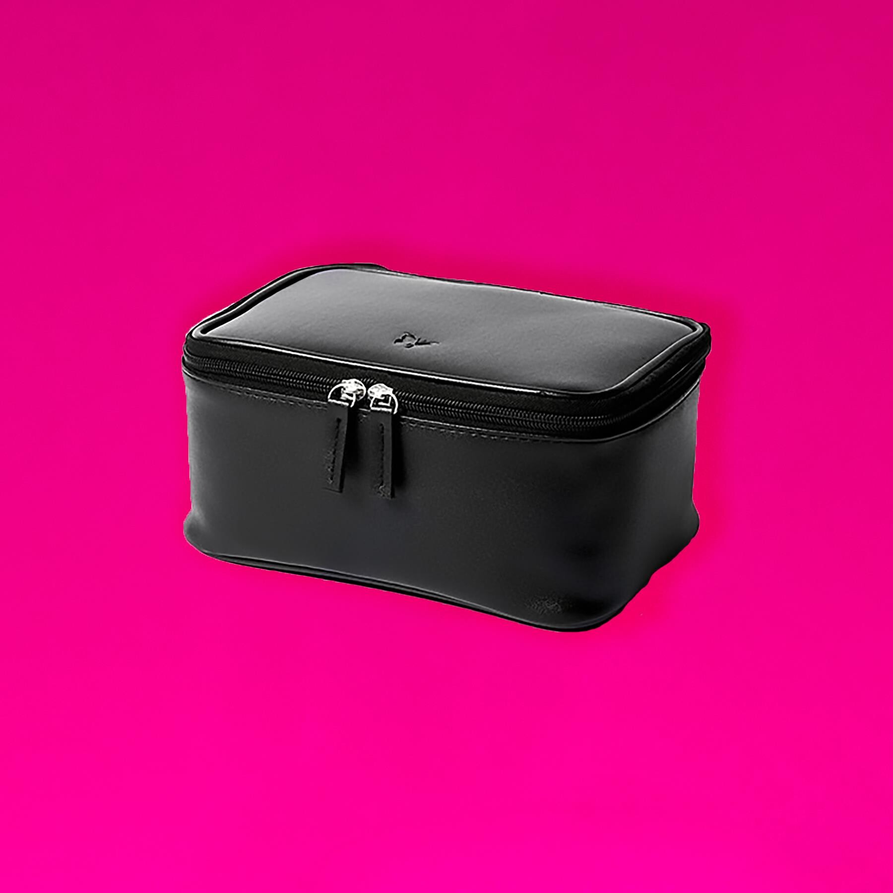 Made from vegan leather, this discreet case is perfectly sized for most sex toys! Use it to store and protect your favorite vibrators, dildos, strokers, and more at home. Or throw the case in your suitcase, so you can take them on your next trip. No one would ever guess what’s hidden inside! Durable construction with heavy-duty zippers and carrying handle for long-lasting use. Measures 8.5 by 6 by 3.5 inches. Made from vegan leather.