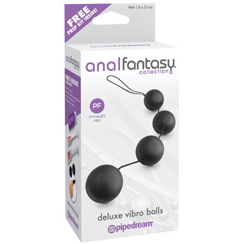 Try wearing your Anal Fantasy Deluxe Vibro Balls during sex or for solo fun. Many fans enjoy removing the balls one at a time or very quickly to enhance climax.