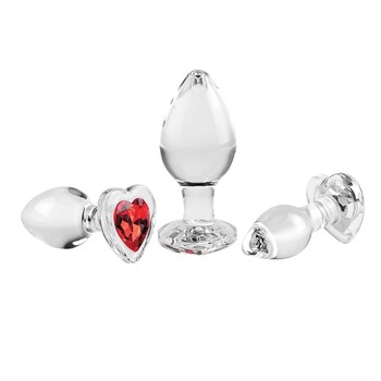 Train your way to total anal ecstasy and satisfy all your booty cravings with 3 graduated sizes: small, medium, and large. Carefully pop one in, then turn around and show off the sparkly heart-shaped jewel in the base!