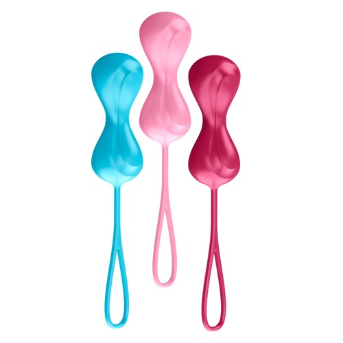 It’s easy with Satisfyer luxury silicone kegel balls! What if you could have bigger, better, more satisfying O's both solo and with a partner? With this set of 3 luxurious weighted silicone kegel balls, you can! In just 15 minutes a day, the Satisfyer Balls can help you strengthen your kegel muscles. Stronger kegels can increase your tightness, control, and satisfaction – so you can reach the finish line faster and with more intensity. Includes regular, skilled, and advanced balls.
