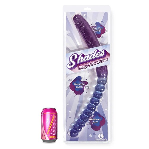 Grab your favorite sexy friend and share a ride like no other! The Shades Fade To Cool Beaded 17” Double Dildo starts on one end with cool blue beads, then transitions halfway through into a thick realistic purple dong. Choose which end you want to try, add plenty of your favorite lubricant, and enjoy an intense grind. When one of you needs a breather, the unoccupied end makes a great handle for deep thrusting.