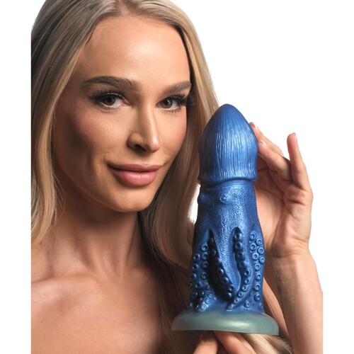 You're gonna need a bigger...hole! Take your deepest fantasies, raunchiest roleplay, or most creative cosplay to a life aquatic when you net your own Cocktopus! He's spent millennia below the waves growing into this unfathomable size for your kinkiest carnal pleasures! The iridescent Cocktopus has eyes on the side of its head, 8 tentacles with textured suckers on them, and a bulbous head with a tapered tip. Lube up, take a deep breath and go deep with this girthy dong. Squishy and soft on the outside, he's firm on the inside and he's going to fit to your form as you let him slip inside and penetrate you. Made out of premium, phthalate-free silicone, he's body-safe to use with water-based lubricants. Place the suction cup base on most flat surfaces for hands free exploration. Let him enter your darkest cave –– he fits most harnesses, ready to shock & thrill your partner! 8.4 inches long, 7.5 inches insertable. A thick 2.2 to 2.7 inches wide. Silicone.