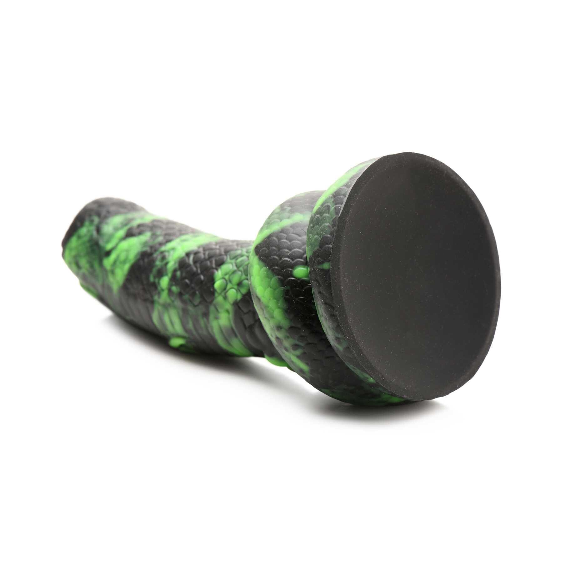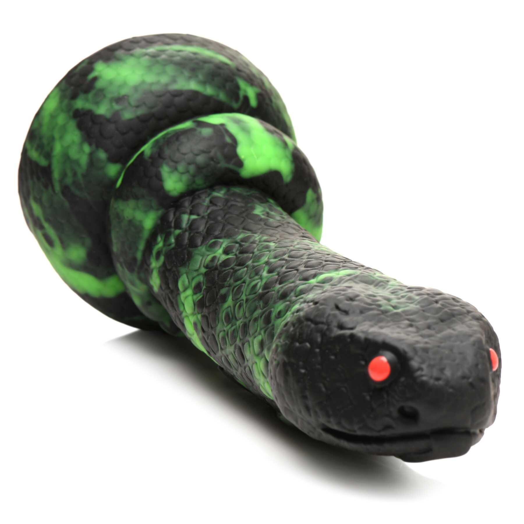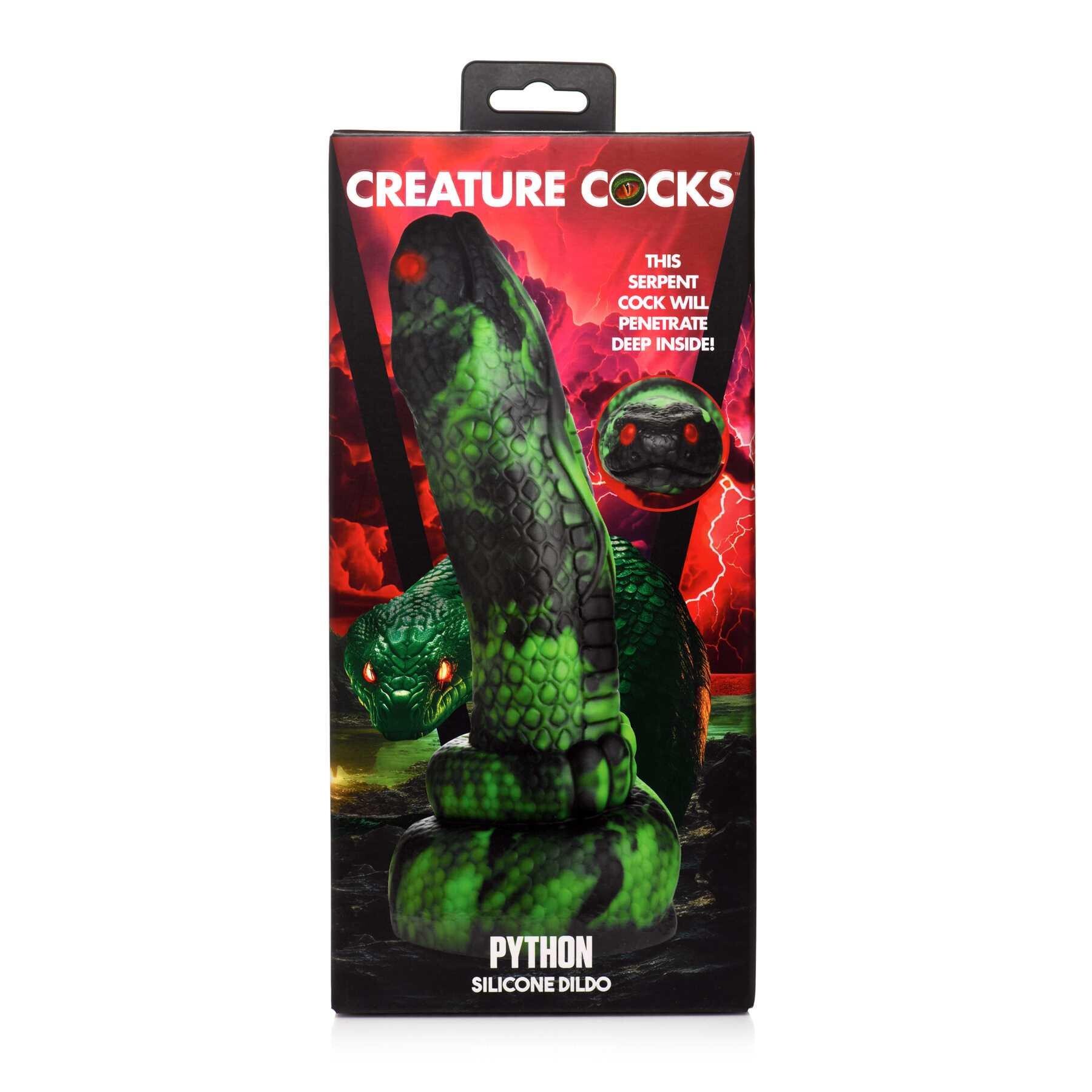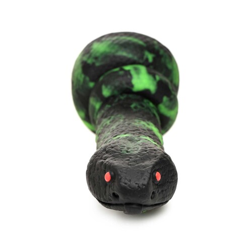 Make your serpentine dreams come true with the Python Silicone Dildo by Creature Cocks. This s-s-sexy lover is extra long & wide to fill you up with excitement. Lurking in the shallows of an alien swamp, wrapped around the waist of a belly-dancer, coiled around the branch of a dark forest – this fearsome creature has been lying in wait for you! Once it sets its hypnotizing red orbs on you, you become its sexual prey. As it slithers inside you, feel its scaly snakeskin and eager tongue thrill your inner nerves. At 7.35 inches of insertable length and a max diameter of 2.5 inches, this XXL toy is not for beginners. Suction cup base is great for hands-free riding. Waterproof. 9.6 by 4 inches total. Made of premium, soft-feel silicone.