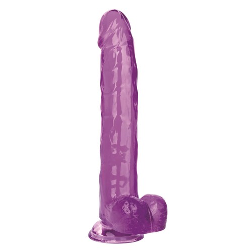 Size Queen 10 Inch Dildo Upright Product Shot With Balls to Right - Purple