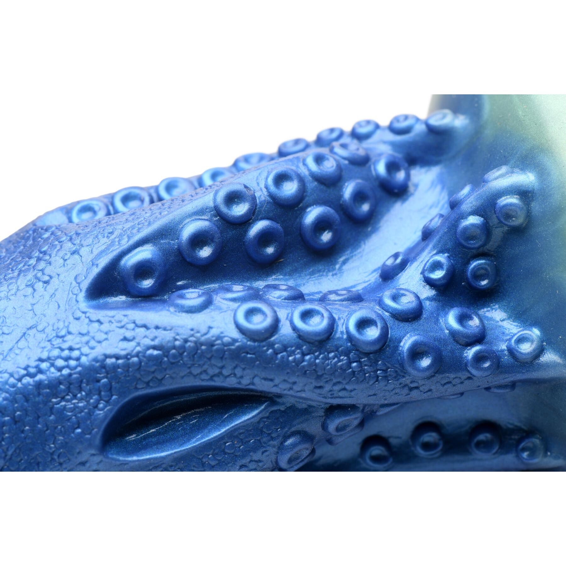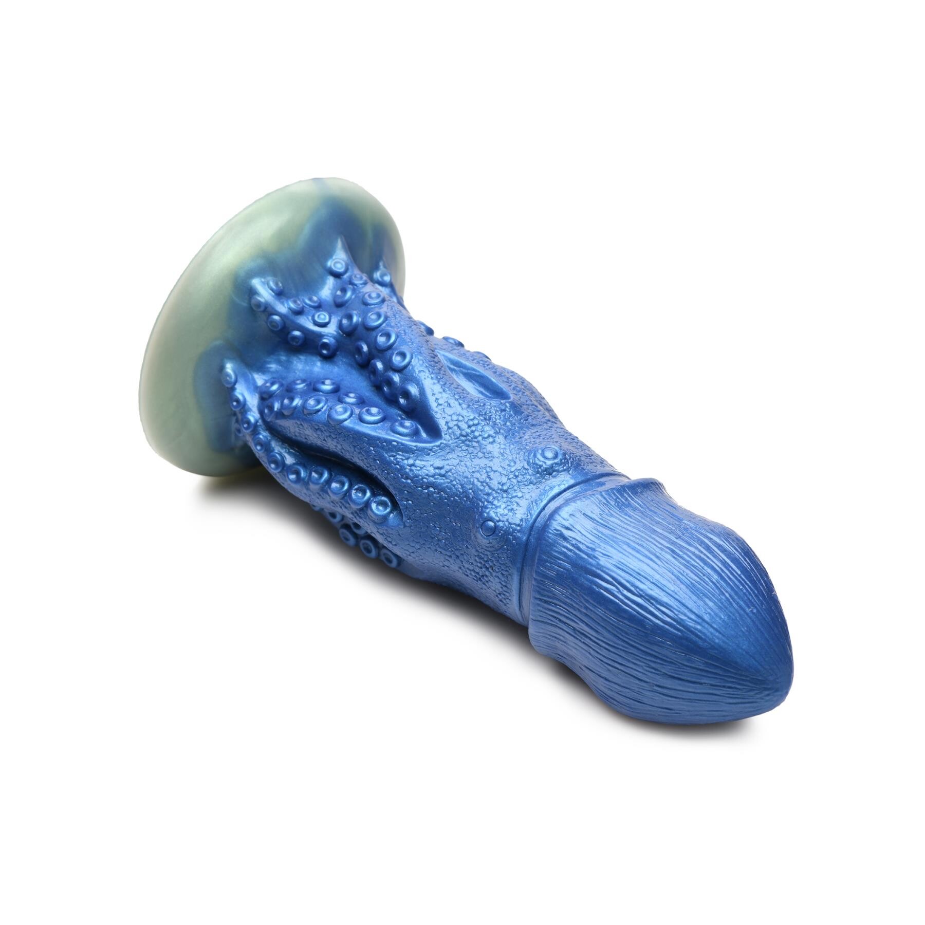 You're gonna need a bigger...hole! Take your deepest fantasies, raunchiest roleplay, or most creative cosplay to a life aquatic when you net your own Cocktopus! He's spent millennia below the waves growing into this unfathomable size for your kinkiest carnal pleasures! The iridescent Cocktopus has eyes on the side of its head, 8 tentacles with textured suckers on them, and a bulbous head with a tapered tip. Lube up, take a deep breath and go deep with this girthy dong. Squishy and soft on the outside, he's firm on the inside and he's going to fit to your form as you let him slip inside and penetrate you. Made out of premium, phthalate-free silicone, he's body-safe to use with water-based lubricants. Place the suction cup base on most flat surfaces for hands free exploration. Let him enter your darkest cave –– he fits most harnesses, ready to shock & thrill your partner! 8.4 inches long, 7.5 inches insertable. A thick 2.2 to 2.7 inches wide. Silicone.