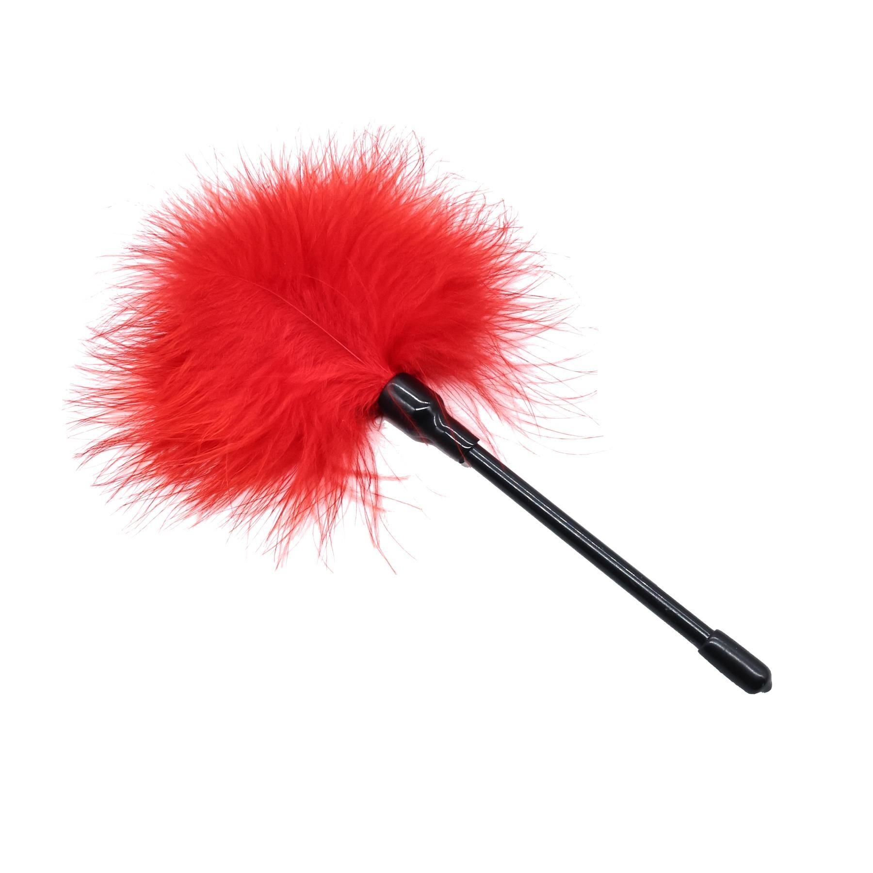 Tickle and tease skin (and naughty bits) with this sensational teaser. Your skin delights in the soft graze of the feathers. Pro tip: combine with the blindfold for fun foreplay games. 8.5 by 4.5 inches. Feather & ABS.