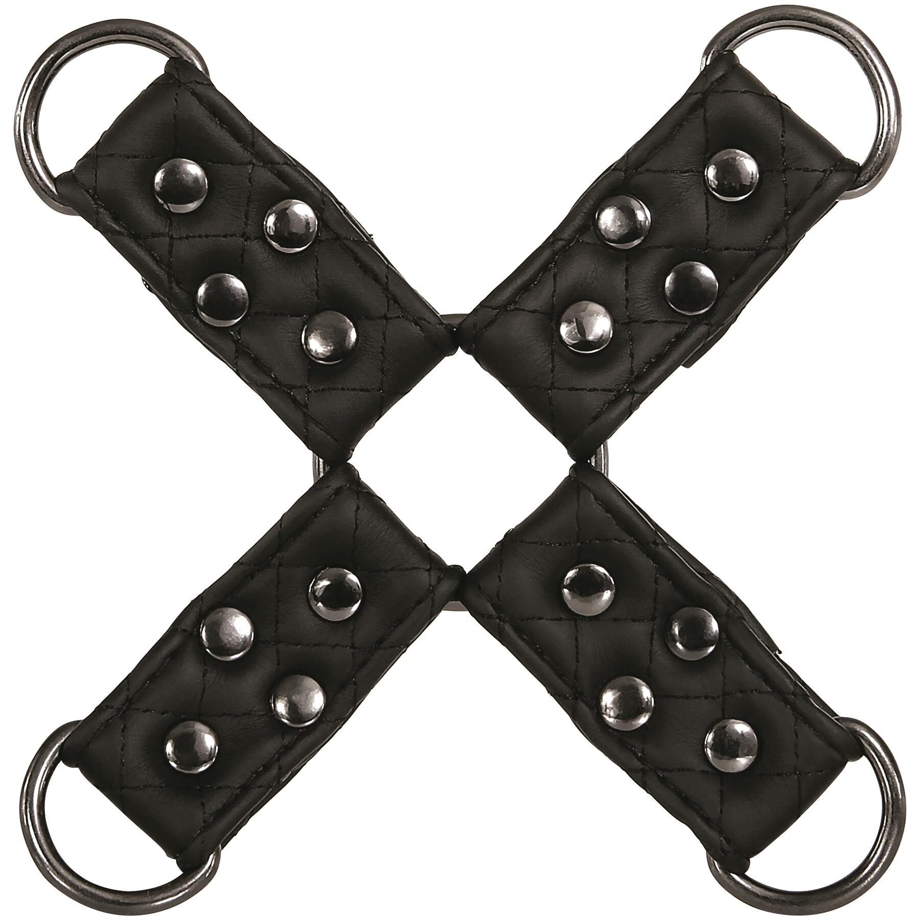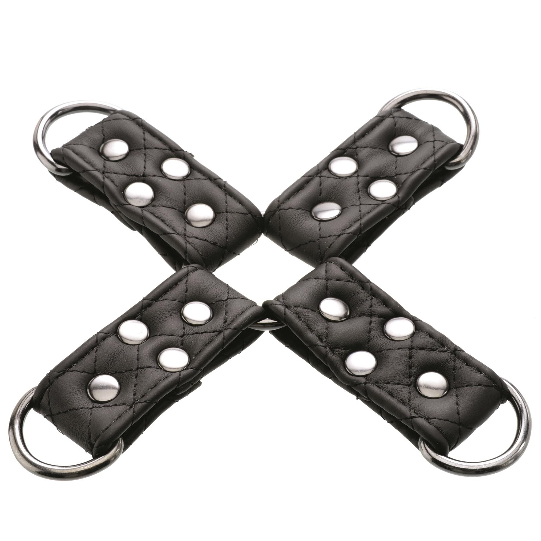 - Cross buckle connects all 4 cuffs, turning them into a hogtie