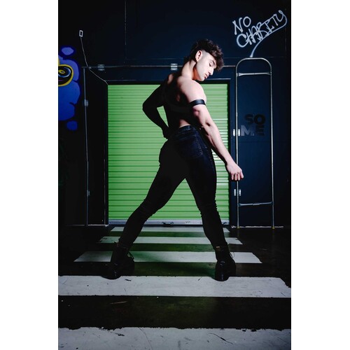 Made for adventurous men, the Gladiator Harness is great for heavy-duty play! This faux leather harness hugs your upper chest, highlighting your masculine shape, boosting your confidence, and adding kinky sex appeal. Metal rings provide attachment points for bondage gear, including ropes, chains, cuffs, leashes & more. Adjustable buckle ensures a great fit. Bonus arm band included for more ways to play. Harness fits chests from 38.6 to 44.1 inches. Made from faux leather & metal.