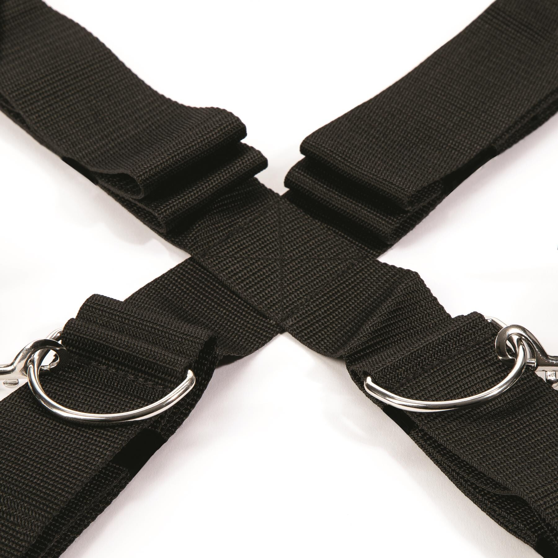 Fits upto a king size bed , great for travel, restraints hold even a plus size person