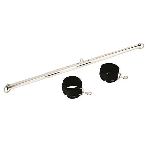 Explore your fantasies like never before with this exciting bondage tool! Now you can experience the delicious thrill of effortless spread-eagle positions. Simply place ankles or wrists in the Velcro cuffs and spread out legs or arms a little or a lot. Assembles in seconds for kinky games galore! Adjusts from 29 to 37 inches long. Aluminum.