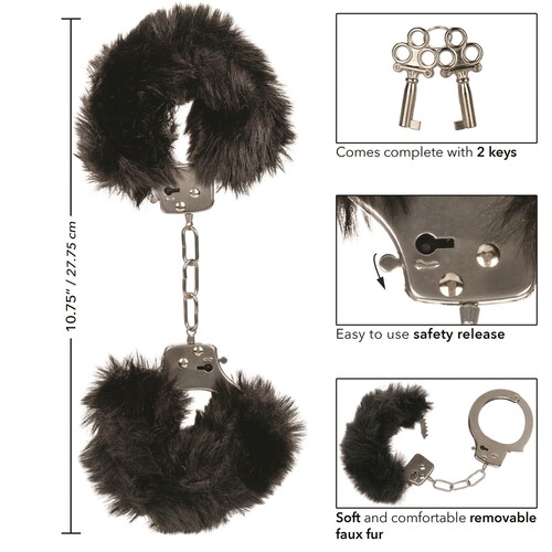 No matter how intense your bondage play, your metal cuffs will keep a secure hold. Your Ultra Furry Cuffs are great for quick 'n' easy bondage, kinky role play, and for as many bedroom adventures you can think of.