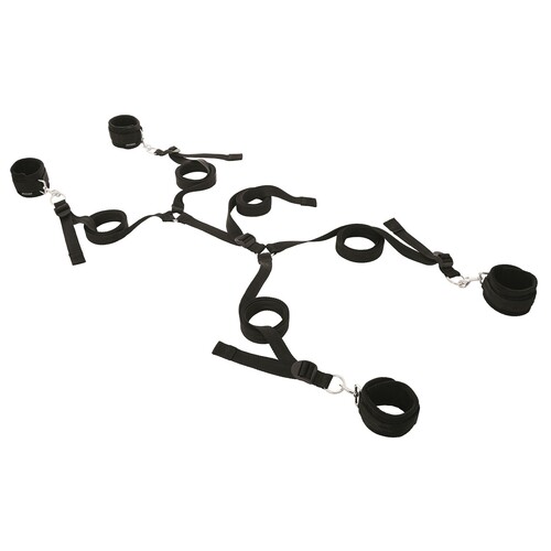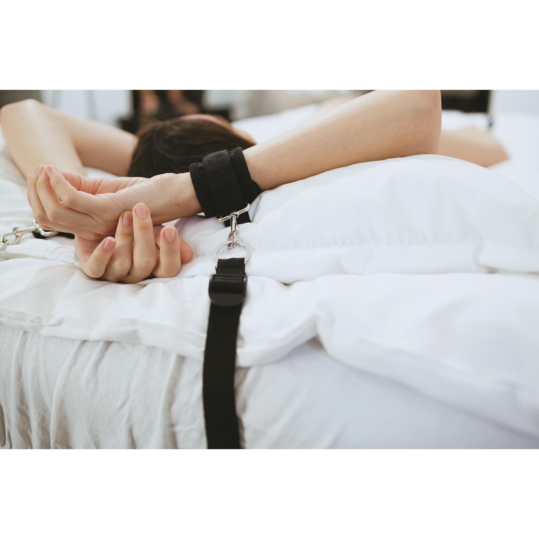 The restraint system comes with 4 wrist and ankle cuffs so you can strap your partner’s arms and legs to the bed! The cuffs are lightly padded for a comfortable and safe fit. Velcro fasteners make them quickly and easy to remove. And they're fully adjustable, so you can tighten or loosen them as needed.