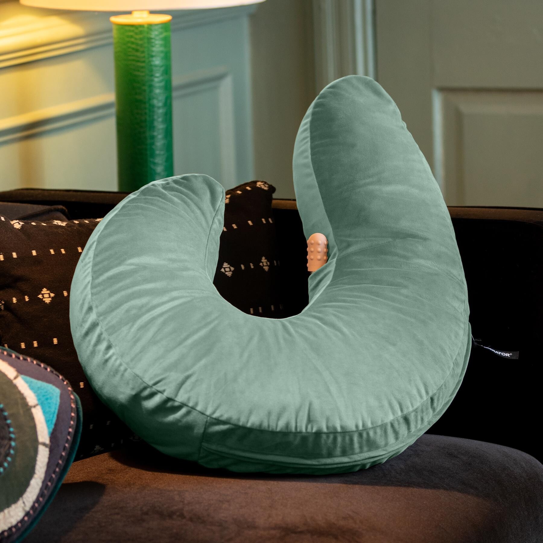 Crafted with your pleasure in mind, the Lune Side Snuggle Pillow ensures you’ll have a fun & relaxing time in bed! This memory foam pillow is specially shaped to fit your body. Tuck your shoulder into the curve while lying on your side for spooning! Slide it between your legs for knee & back support while you sleep or for grinding as you play. There’s even a discreet pocket for a vibrator (sold separately) to enhance your fun. Machine-washable cover removes for easy cleaning. Measures 27 by 21 by 4 inches total. Made from memory foam with a polyester outer cover.