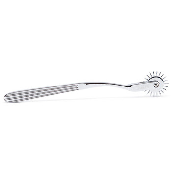 Experience maximum sensory excitement with this wicked wheel of spikes! Gently and slowly run the pinwheel over skin to awaken ultra-sensitive nerve endings, and live out all your kinkiest fantasies. Makes a great naughty addition to your bondage toybox! Storage bag included. 7.25 by 1 inches. Metal.