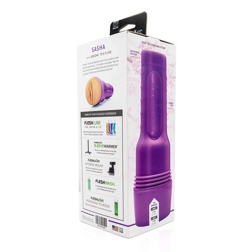 The curvaceous cover of Sasha’s Fleshlight box will drop your jaw. When you take her Fleshlight out of the package, you’ll love the coordinating case color – and her gorgeous vaginal opening. Sasha’s got a detailed clit and lips that feel so real.
