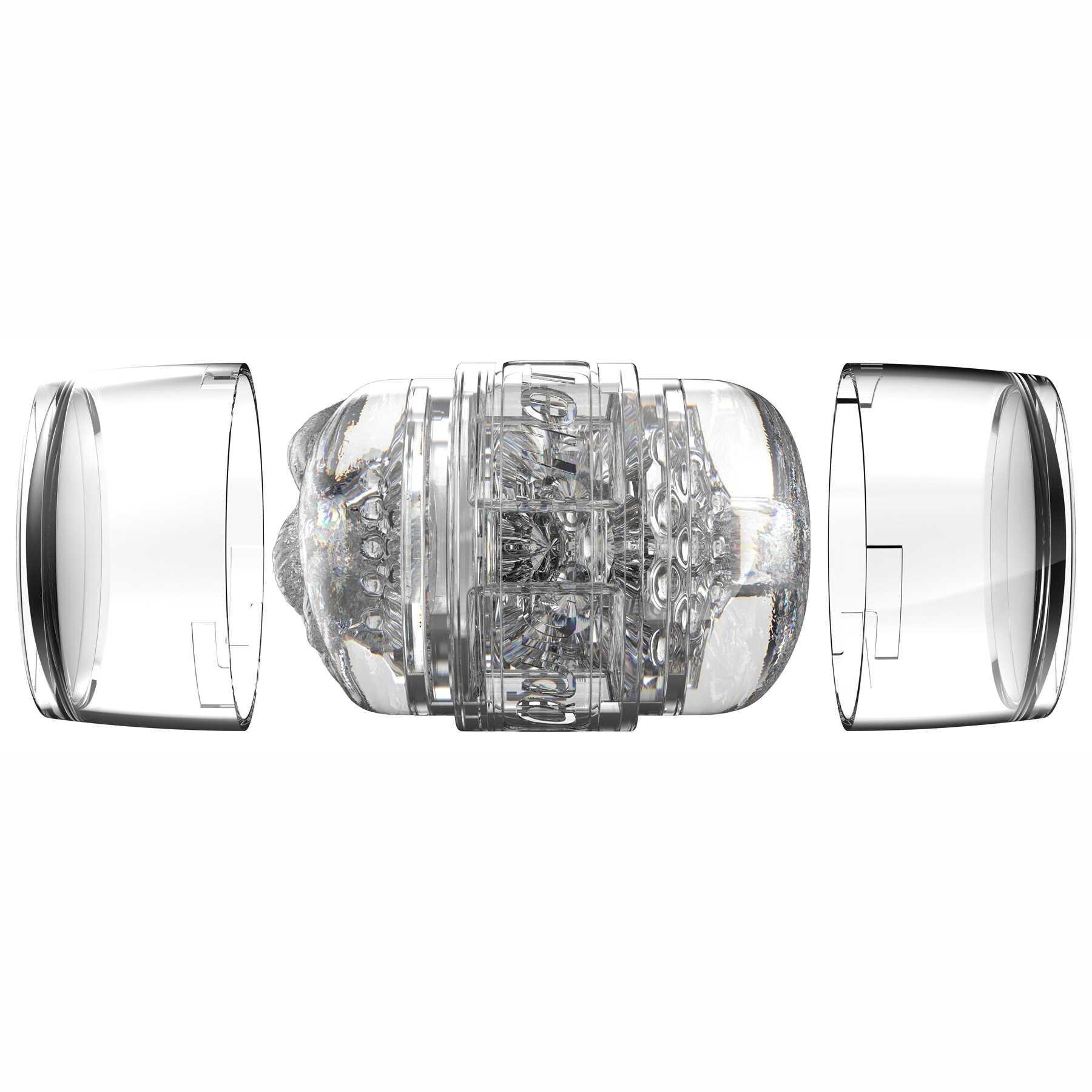 The interior of the Fleshlight Quickshot is lined with Stoya’s very own texture. This is a stimulating array of pleasure nubs, ticklers, and teasers designed to mimic the feel of her body for the ultimate stroking experience. The stimulators massage your sensitive tip and work your entire shaft for explosive pleasure! The crystal-clear case & sleeve offer an up-close look at all the steamy action.