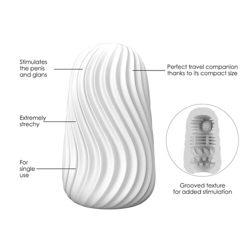 Ready to get started? Bring along your favorite water-based lube and pop open the discreet frosted plastic case. You’ll reveal the super-soft and stretchy stroker inside. Now you’re faced with a choice. Add lube to the inside and slide in to feel nubby textures and ticklers tease your shaft all over! Or reverse the stroker and plunge your rod into a swirl of multiple soft ridges.