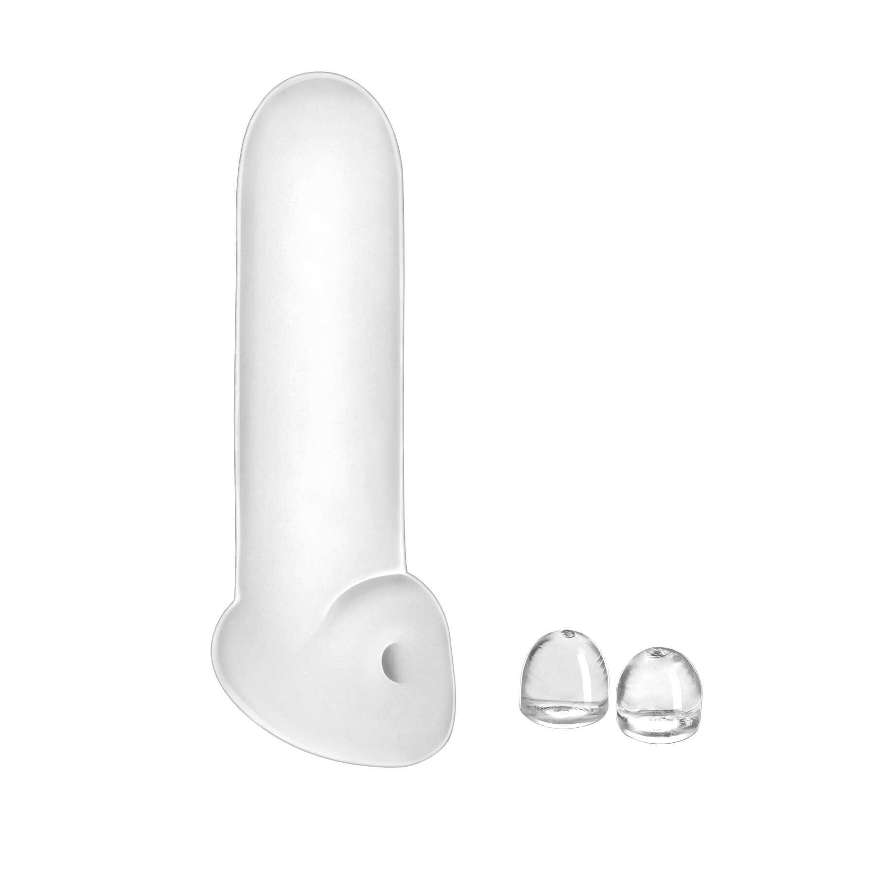 The sleeve itself adds a full inch to your length as soon as you put it on. Maybe that’s all you need and all your partner can handle. If you want a little more though, you can insert 1 or 2 of the included spacers inside the sleeve’s tip. Each spacer adds an extra inch to your length. When you add everything up, that gives you up to 3 extra inches to work with in bed. That kind of size boost will dramatically change your sex life. You’ll be able to go deeper than ever, reaching your lover’s inner sweet spots to make them howl!