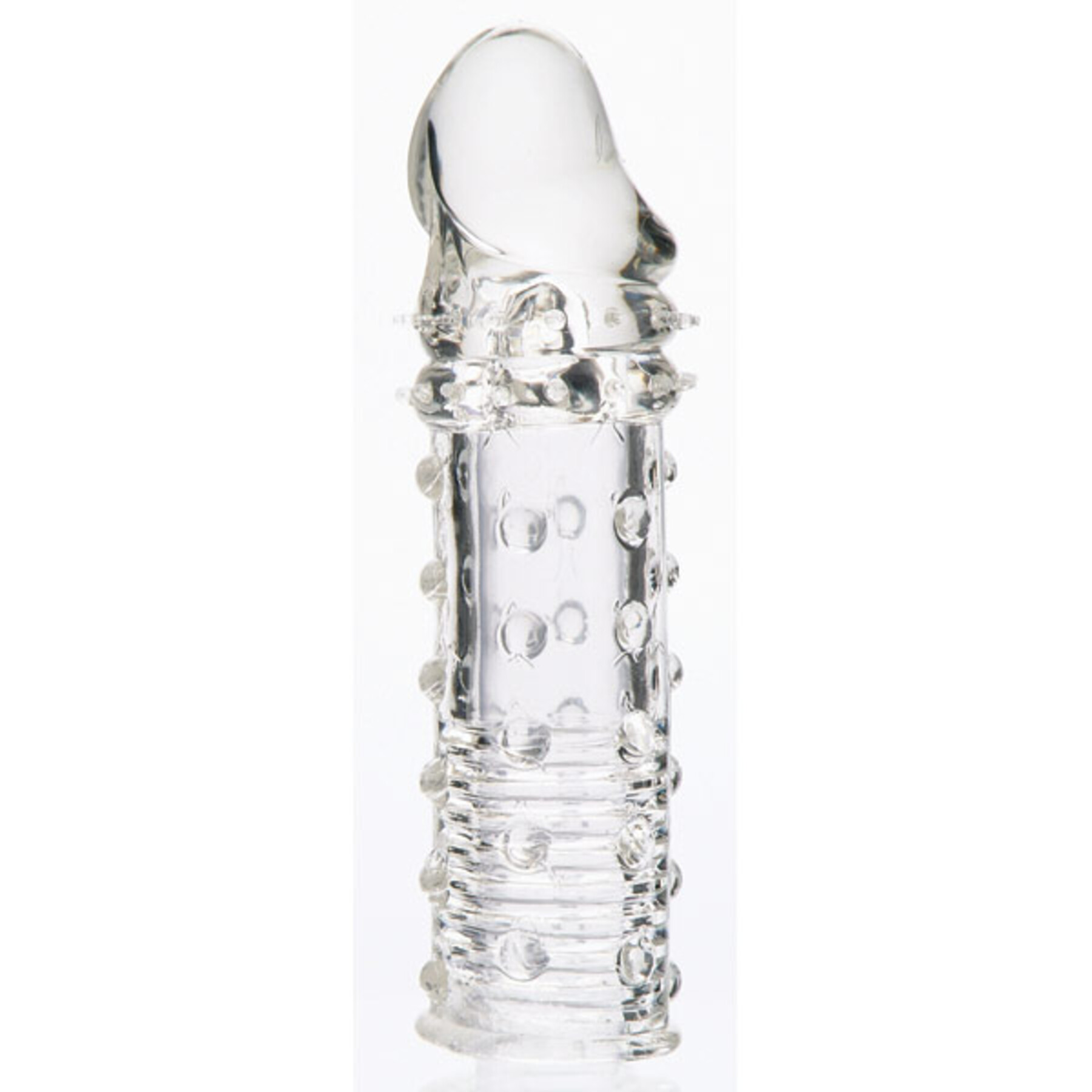 Become bigger than you ever dreamed - instantly! Adam’s Extension adds 2 whole inches to your shaft whenever you want. Find out what's it's like to swing a bigger tool. Satisfy your lover like never before. This bestselling penis extension opens up all kinds of pleasure possibilities! Designed based on customer feedback, the sleeve is lined with pleasure nubs inside and out to keep you rock hard and make your lover moan. The clear sleeve works perfectly with your skin tone. Plus it rolls on & off just like a condom. Great for beginners and experienced users alike. 6 by 1.5 inches. Jelly.