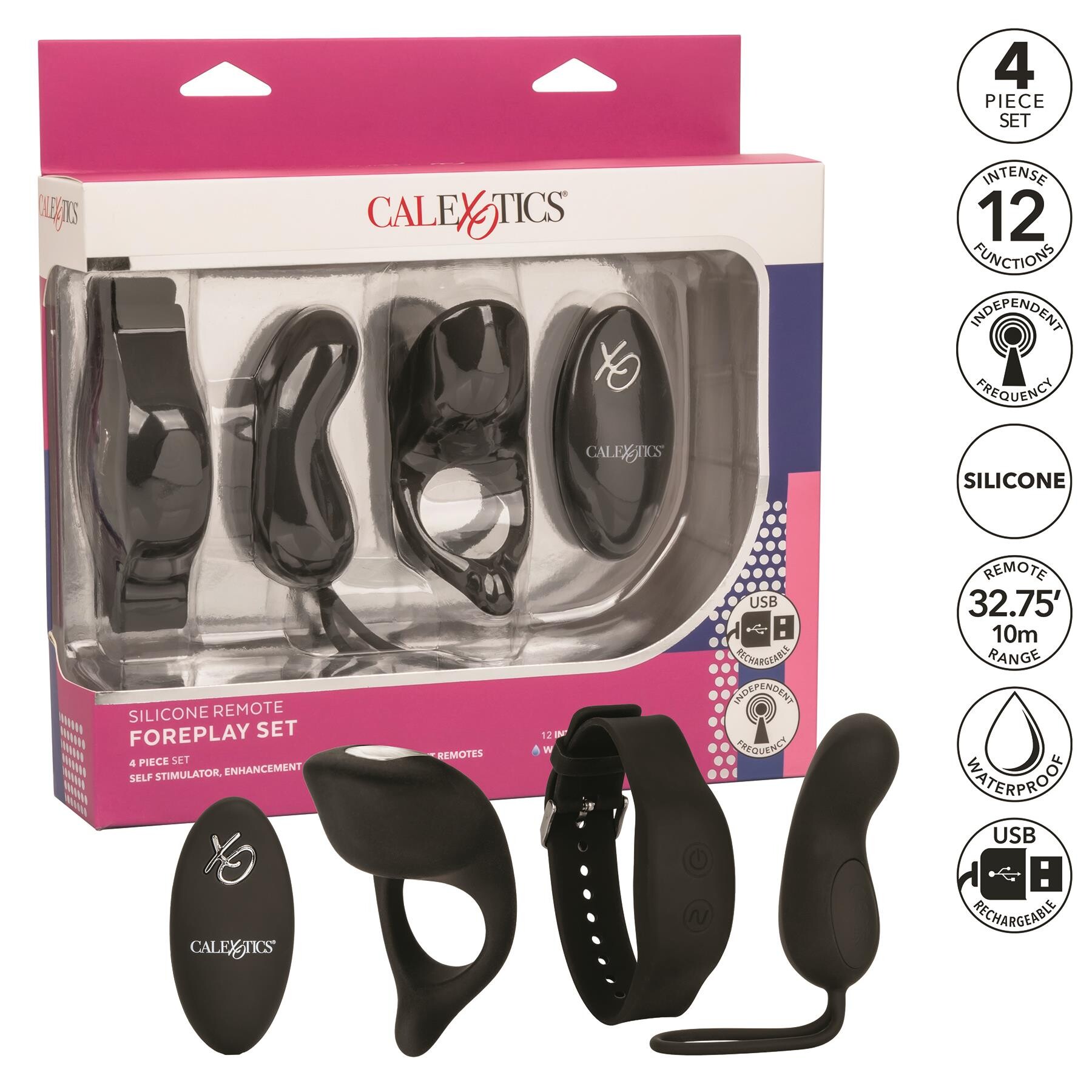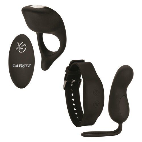 Calling all couples – this fun-filled set is made for sharing! Give one vibe to your lover, while keeping the other for yourself. Then swap remotes so you can buzz their bits with powerful vibrations while they do the same to yours! Waterproof. 3 by 1.25 inches curved bullet; 3.5 by 1.75 inches vibrating ring. Silicone with ABS plastic, stainless steel clasp. Rechargeable.