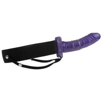 Men & women alike can strap on this satisfying dildo and give their lover a taste of the good stuff! The dildo is firm to the touch for fast & hard action with just a little flexibility for a more enjoyable feel. The inside is completely hollow, so anyone can use it... even if you already have a penis! The elastic harness fits snugly and securely around the waist. Dildo is 6 by 1.75 inches. Harness fits up to a 42-inch waist. Made from elastic with a PVC dildo.
