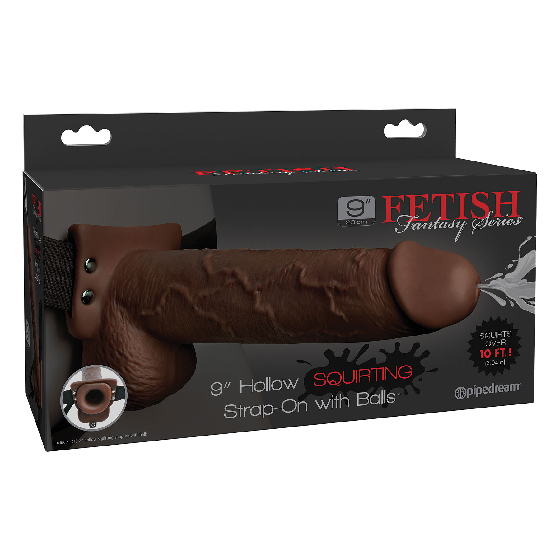 9" Hollow Squirting Strap-On With Balls