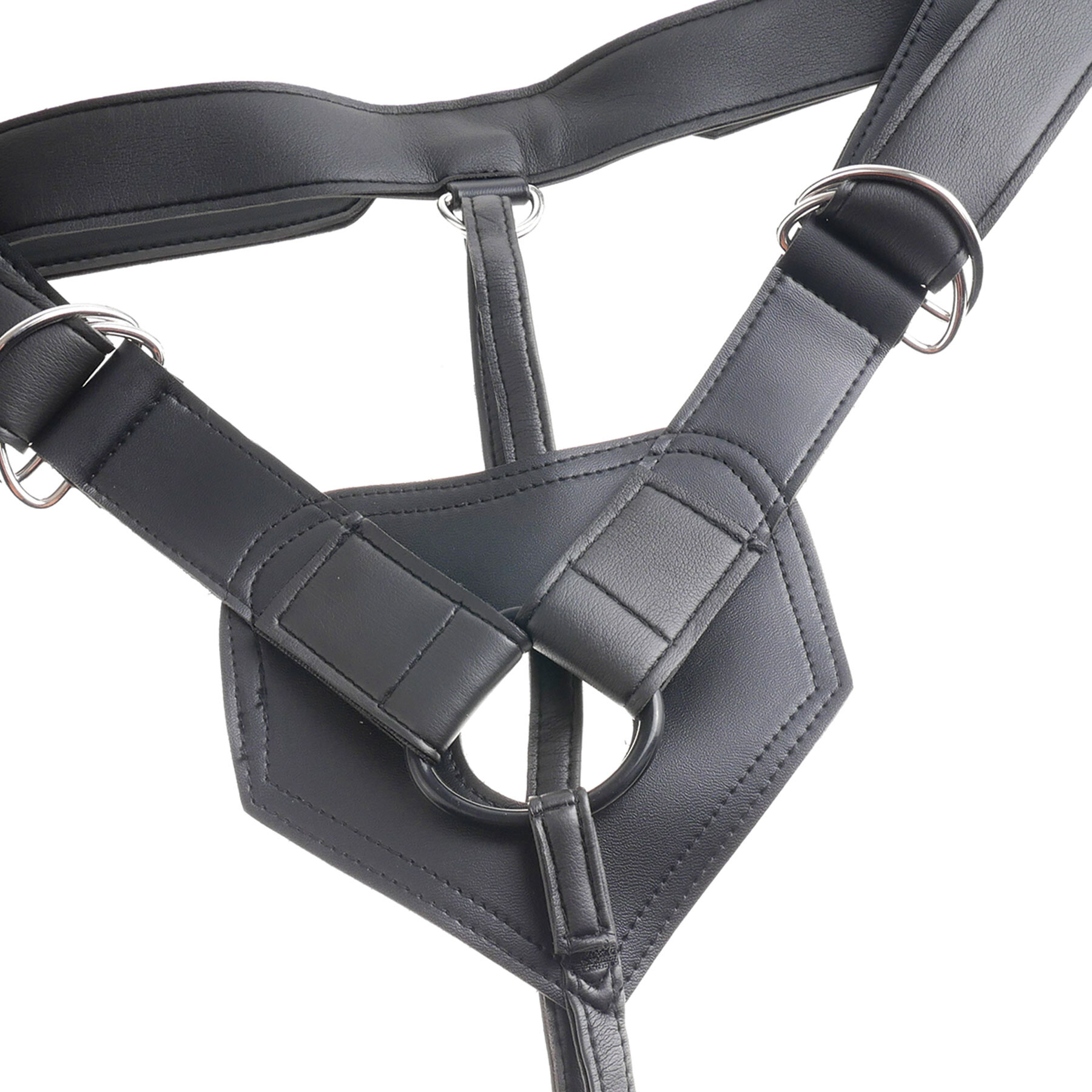 The KingCock Strap-On Harness fits a wide range of toys with large or flared bases – not just the included dildo. Simply slip one of the 3 included O-rings around the toy of your choice. (You can use the 1.2-inch, 1.6-inch, or 2-inch ring, depending on which fits best.) Lock the O-ring into the harness, and you’re ready to rock. The toy’s flared base holds the O-ring in place, and the straps keep the toy securely in position no matter how wild you get.