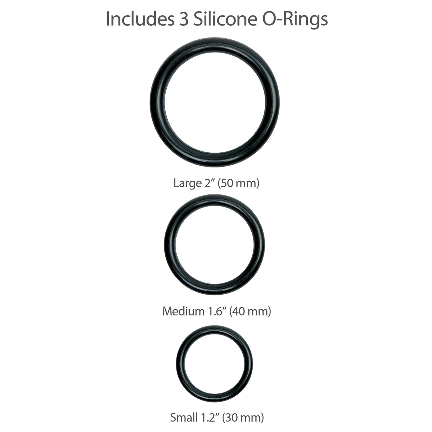 • 3 interchangeable O-rings included to fit different-sized dildos