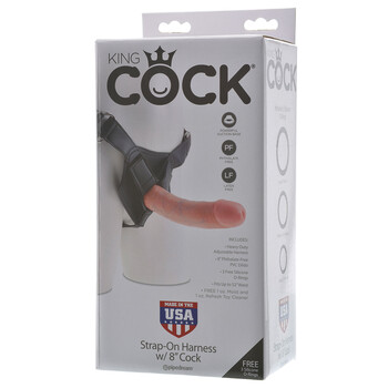 Have you been dreaming of a strap-on harness that’s stylish, comfortable, and gives you ultimate control? What about a dildo that feels just like the real thing and is sized for big thrusty thrills? Wake up, you’re not dreaming! It’s here, and it’s all yours in the KingCock Strap-On Harness With 8-Inch Dildo. This complete strap-on set includes everything you need for wild fantasy play. Fits up to 52 inch waist. Dildo is 8 by 1.75 inches total; 7 by 1.75 inches insertable. Made in the USA with metal hardware, nylon straps, and vinyl. Phthalate-free PVC dildo. Silicone O-rings.