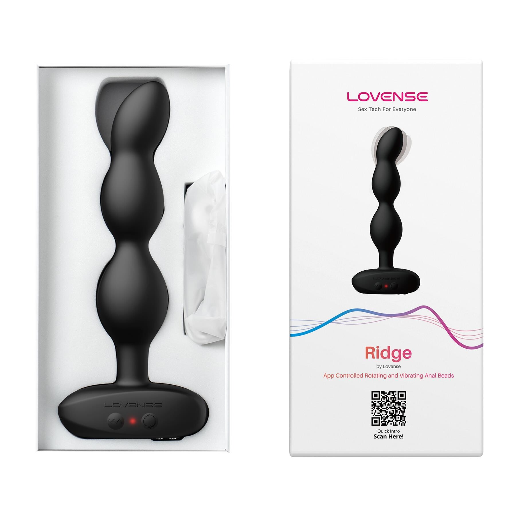 Gift your rear an intense inner rotating massage plus tons of toe-curling vibration! The Lovense Ridge Bluetooth Rotating Anal Vibrator’s smooth silicone beads slide in deep – just add your favorite water-based lube. Once inside, the tip rotates 360 degrees for a mind-blowing massage. Guys will love how it feels on their P-Spot, gals will love the indirect G-Spot sensations! Choose from 3 rotation speeds and reversable direction. Add to the pleasure with 7 powerful vibration functions that flow throughout the toy. Or connect the Ridge to the FREE Lovense App and play with tons of settings using your phone as a remote control. The app also lets you give control to a partner for long-distance love sessions. Free satin storage bag. Waterproof. 6.75 by 2.76 inches total, 5.75 by 1.34 inches insertable beads. Silicone. Rechargeable.