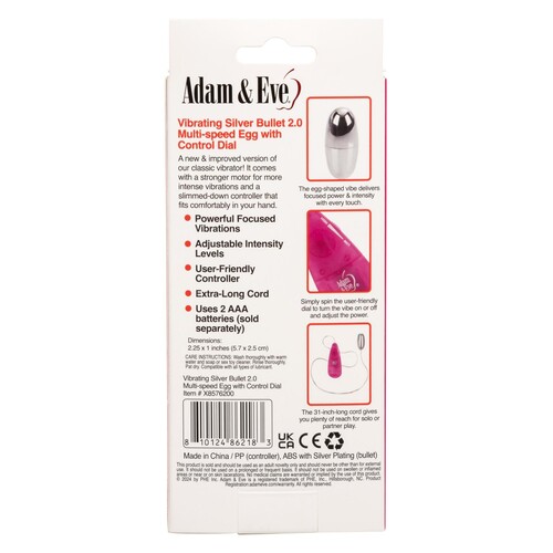 This new & improved version of our classic vibrator is faster and stronger than ever. Its fully adjustable, multispeed vibrations deliver 'gasmic thrills with every touch. Use it by yourself, with your favorite toys, or with a partner. The slimmed-down controller fits easily in the palm of your hand. Measures 2.25 by 1 inches with a 31-inch-long cord. ABS plastic. Uses 2 AAA batteries (sold separately).