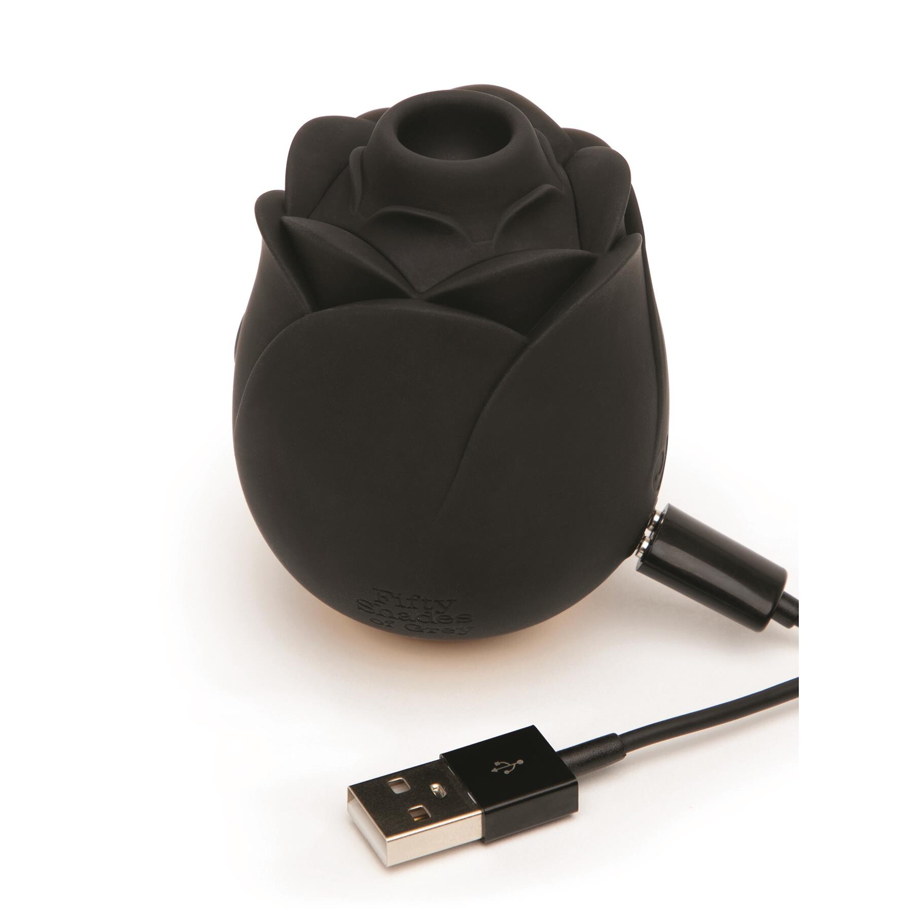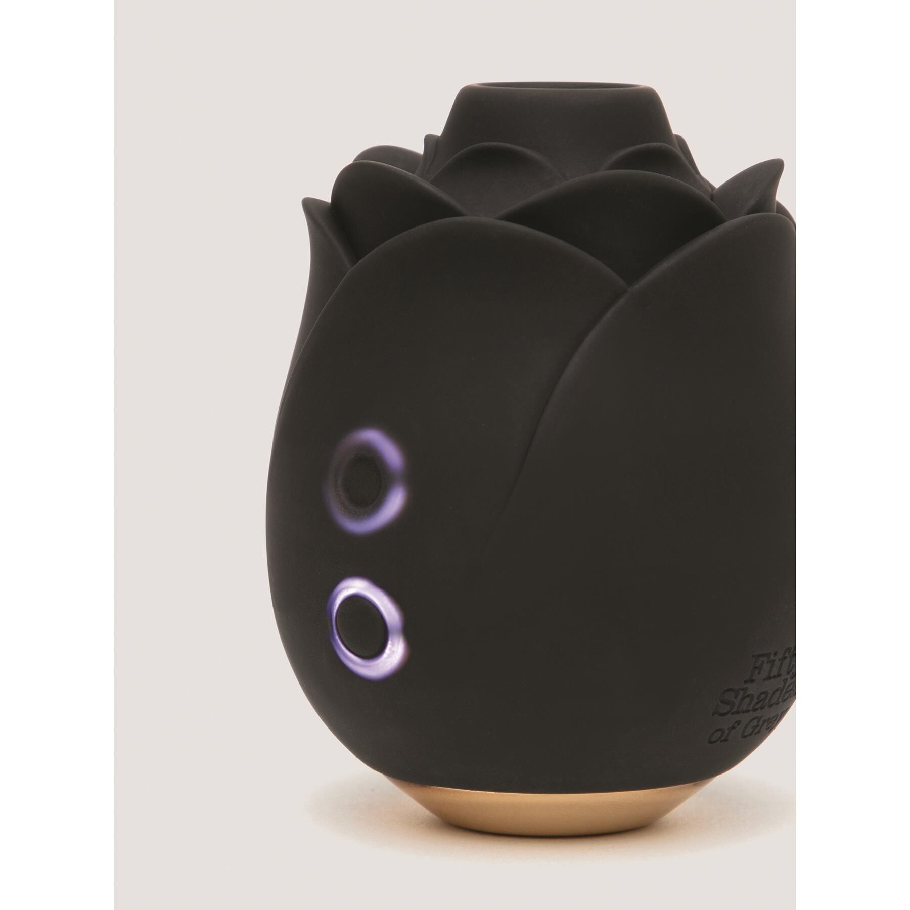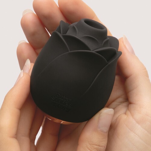 It’s about to be one intense romance – between your clit and this wickedly cool clit stimulator! Inspired by Ana and Christian’s kinky romance, this gorgeous black silicone rose hides magic inside. Just fit its silky-soft opening around your hot spot and turn it on. You’ll be swept away by the incredible feel of tiny thrumming, pulsating air waves stimulating you right where you need it. Play with 10 wild air functions including 6 intensities and 4 fantastic patterns. Waterproof. 3 by 2 inches. In body-safe silicone with ABS plastic details. Rechargeable.