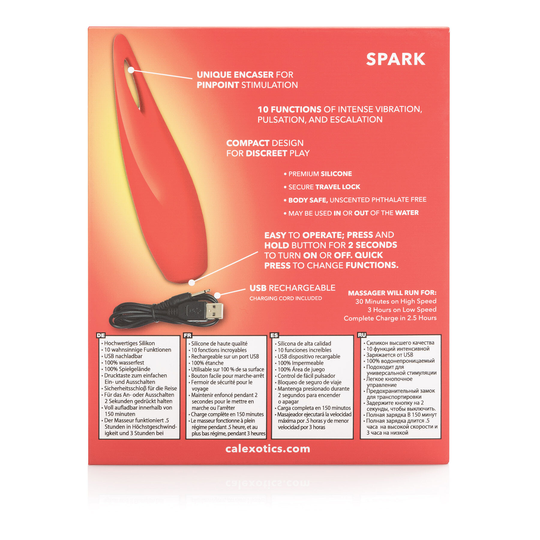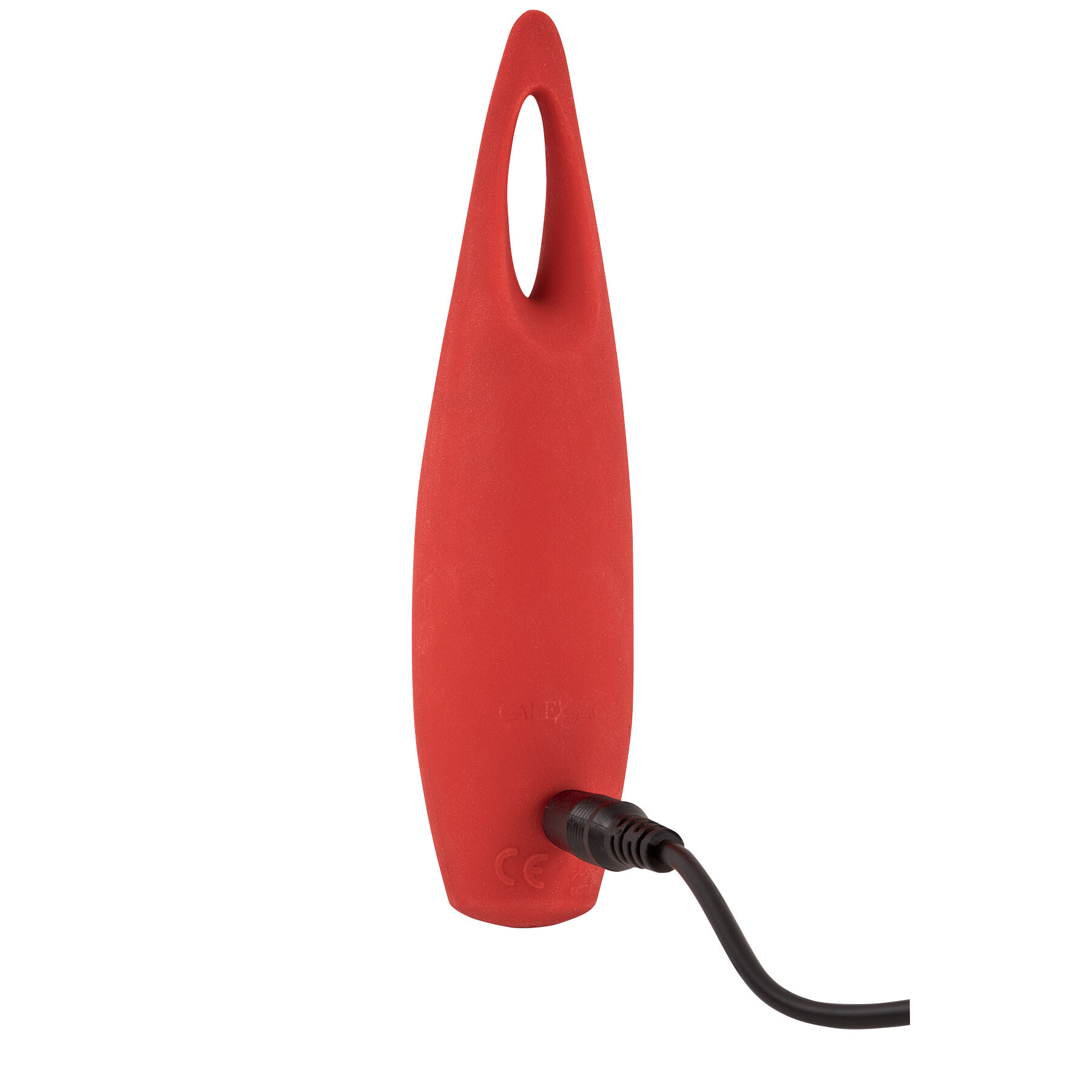 Surrender to your hottest desires! The Red Hot Spark Clitoral Vibrator’s smooth and luxurious flexible silicone loops around your sweet spot for total clitoral stimulation. Fire up its intense motor and let 10 powerful vibration functions blow you away. Quet enough for fun any time, any place. Waterproof. 5 by 1.25 inches wide. Silicone. Rechargeable.