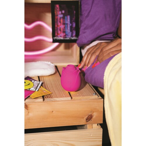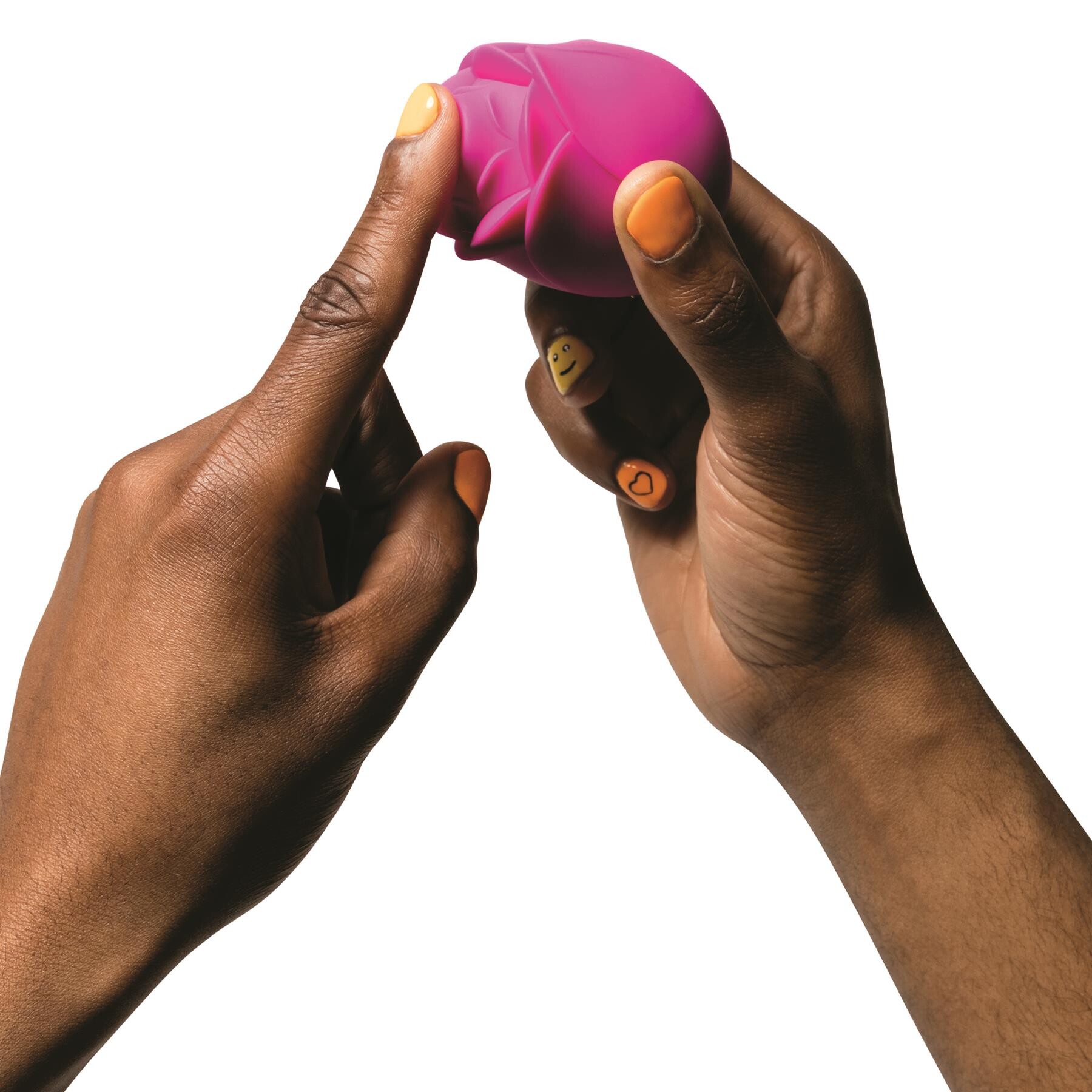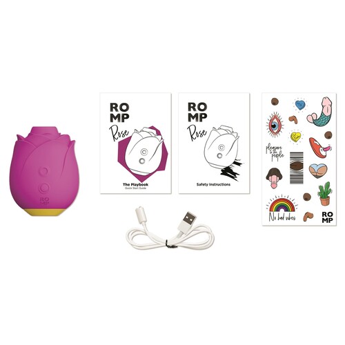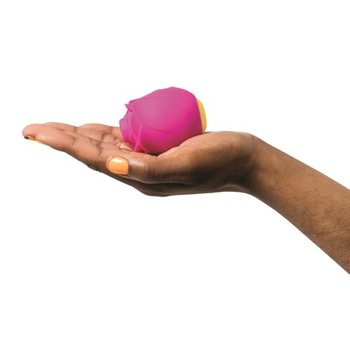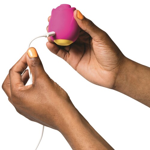Time to start a whirlwind clitoral romance! The Romp Rose Clitoral Stimulator’s soft silicone petals feel so good against your sensitive skin. Glide its flexible opening over your love bud and thrill your clit with 10 stimulating air pressure modes! The rose’s Pleasure Air Technology feels just like tiny thrumming puffs of air – a sensation that fans say feels just like amazing oral! Waterproof. 3 by 2.25 inches. In body-safe silicone with ABS base. Rechargeable.