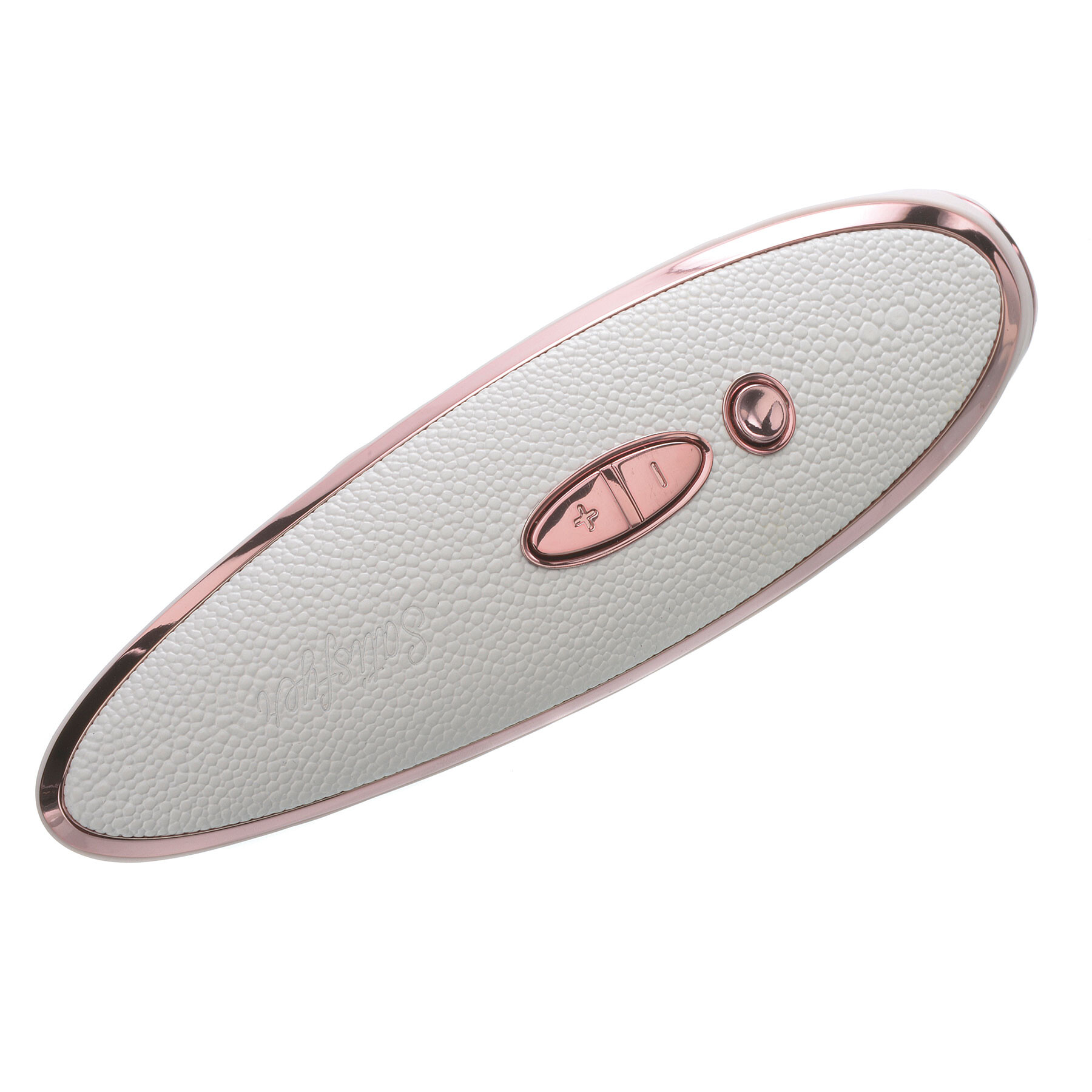 - Round button regulates vibrations, plus (+) and minus (-) buttons regulate dreamy, oral sex-like suction