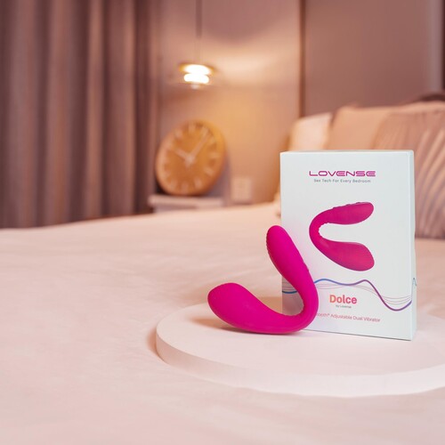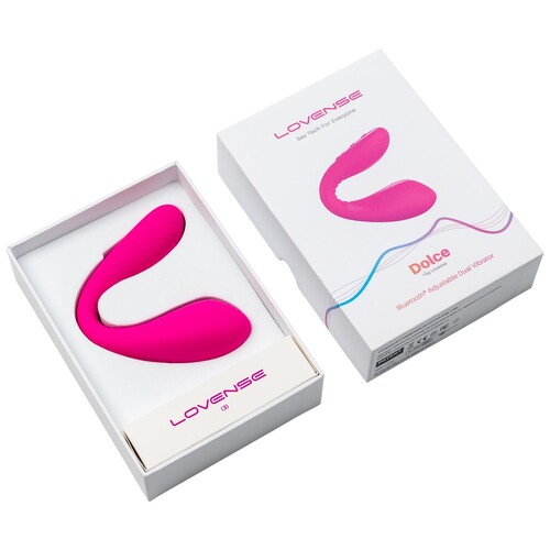 Please both your clit & G-Spot at once with this wild high-tech app-controlled wearable! The Lovense Dolce Bluetooth Dual Vibrator is crafted from velvety-smooth silicone. Add a little water-based lube and slide the wider shaft inside for G-Spot love. The slimmer stimulator rests against your clit. Adjust the angle so it stays in place hands-free. Explore 3 levels of speed + 3 patterns via the Dolce, or connect to the free Lovense app to discover endless new ways to play. Waterproof. 7.5 inches total length, 3.5 by 1.5 inches insertable. Rechargeable.