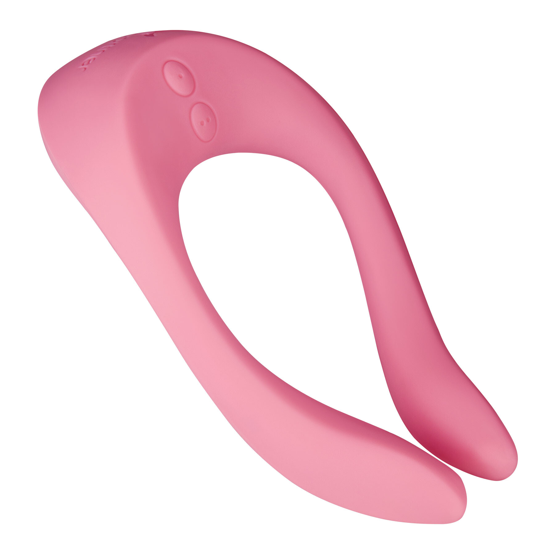 "Imagine this: a guy licking you, only more intense." –– COSMOPOLITAN magazine. Alone or as a couple, get 14 ways & more to enjoy this versatile toy! Here's a vibrator that'll keep you both busy and having fun, solo or together! Made with body-safe silicone, the rechargeable Satisfyer is ready for any gal or guy to play in blissful solitude –– or meet up in the bedroom for even more fun! Thank goodness there's an illustrated book inside the box to show you its hot, hot, hot sex toy secrets! Shaped much like its cousin, the Satisfyer Partner Multifun 1, the Multifun 2 has a different scrubber texture and a thicker set of arms. Waterproof. 5.25 inches long, insertable up to 3 inches. Rechargeable.