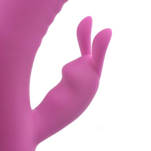 Why work just one or two sweet spots when you can work three of them? That’s exactly what the Adam & Eve Hopping Bunny Triple Stimulator does! This uniquely shaped rabbit stimulator features a pair of ticklish rabbit ears for your clit, a ribbed tip for your G-Spot, and a string of beads for your backdoor. You can feel the bunny’s 14 powerful vibration modes in each stimulator, delivering targeted pleasure right where you need it the most. It’s the kind of blended stimulation you need for body-shaking O’s! Measures 8.5 by 1.4 inches total; 4.75 by 1.4 inches insertable. Made from silicone & ABS plastic. Rechargeable.