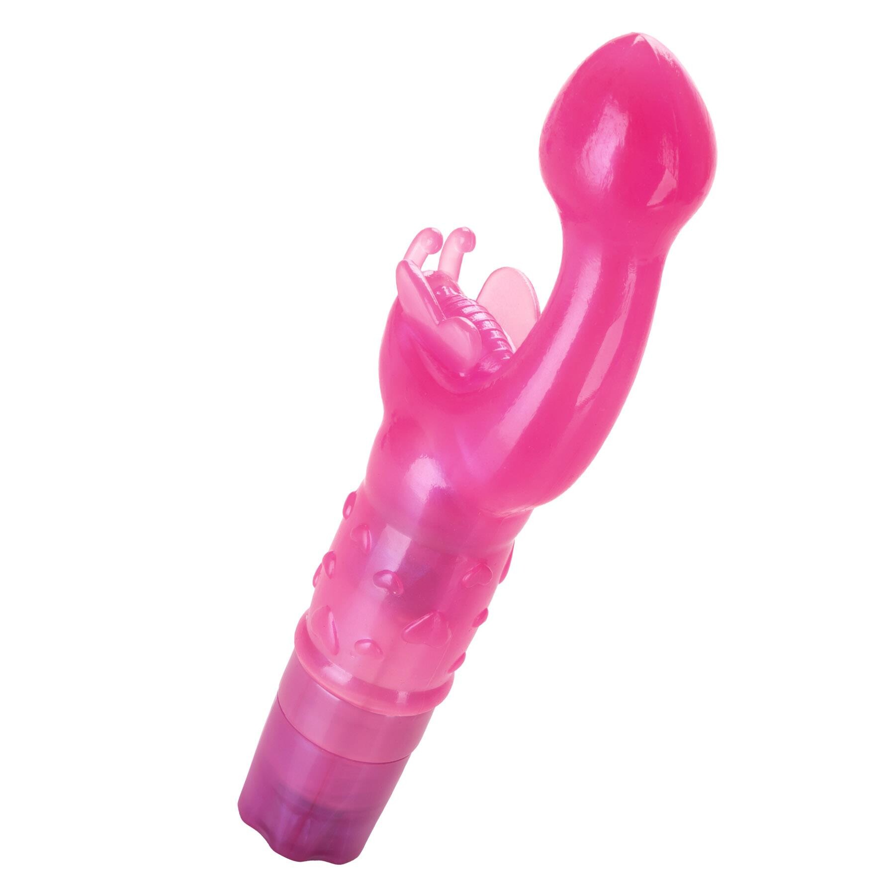 The butterfly stimulator is what makes this vibrator so special! The butterfly's antennae tickle your love nub just like a rabbit. And its cute wings spread around your lips to tease them as well for even more fun.