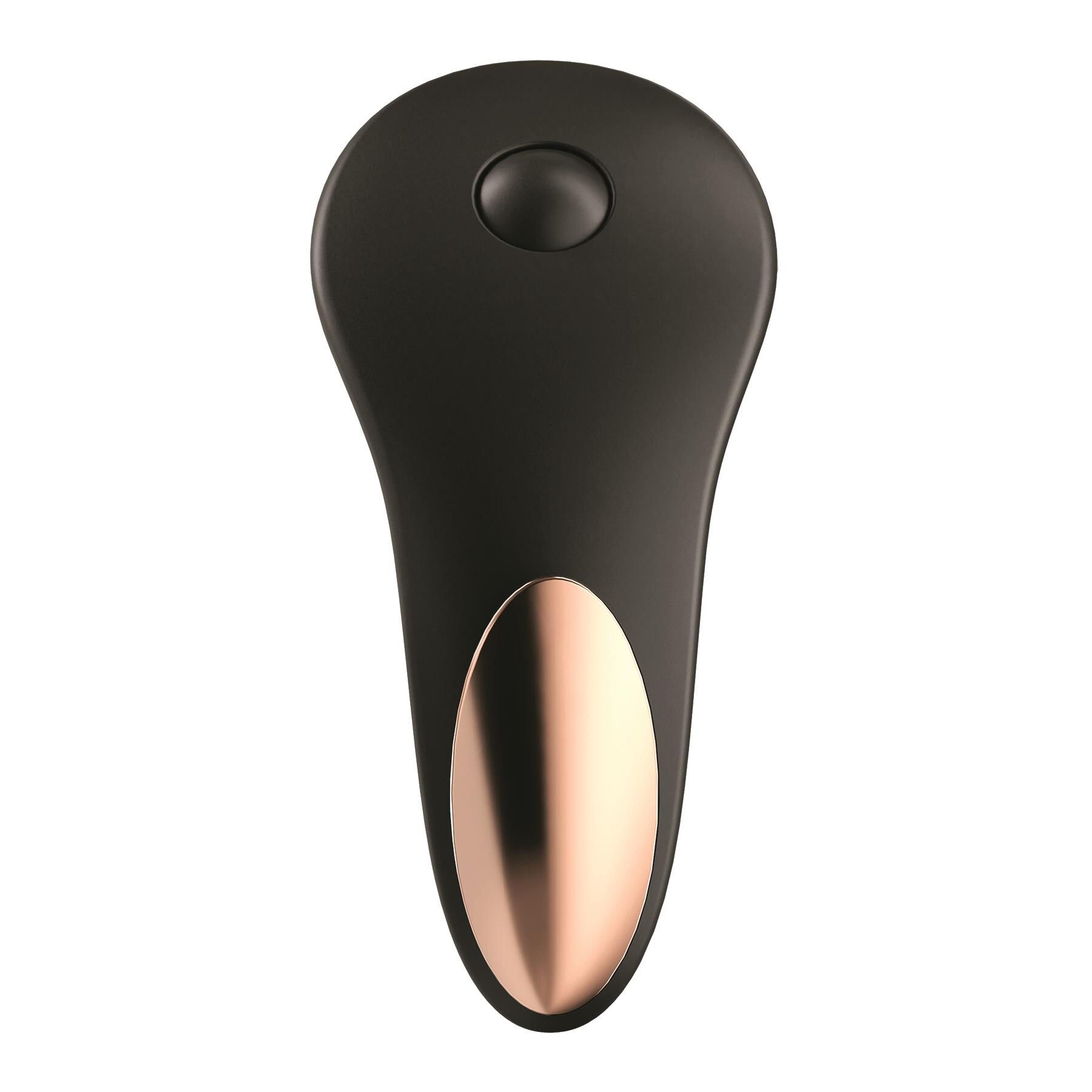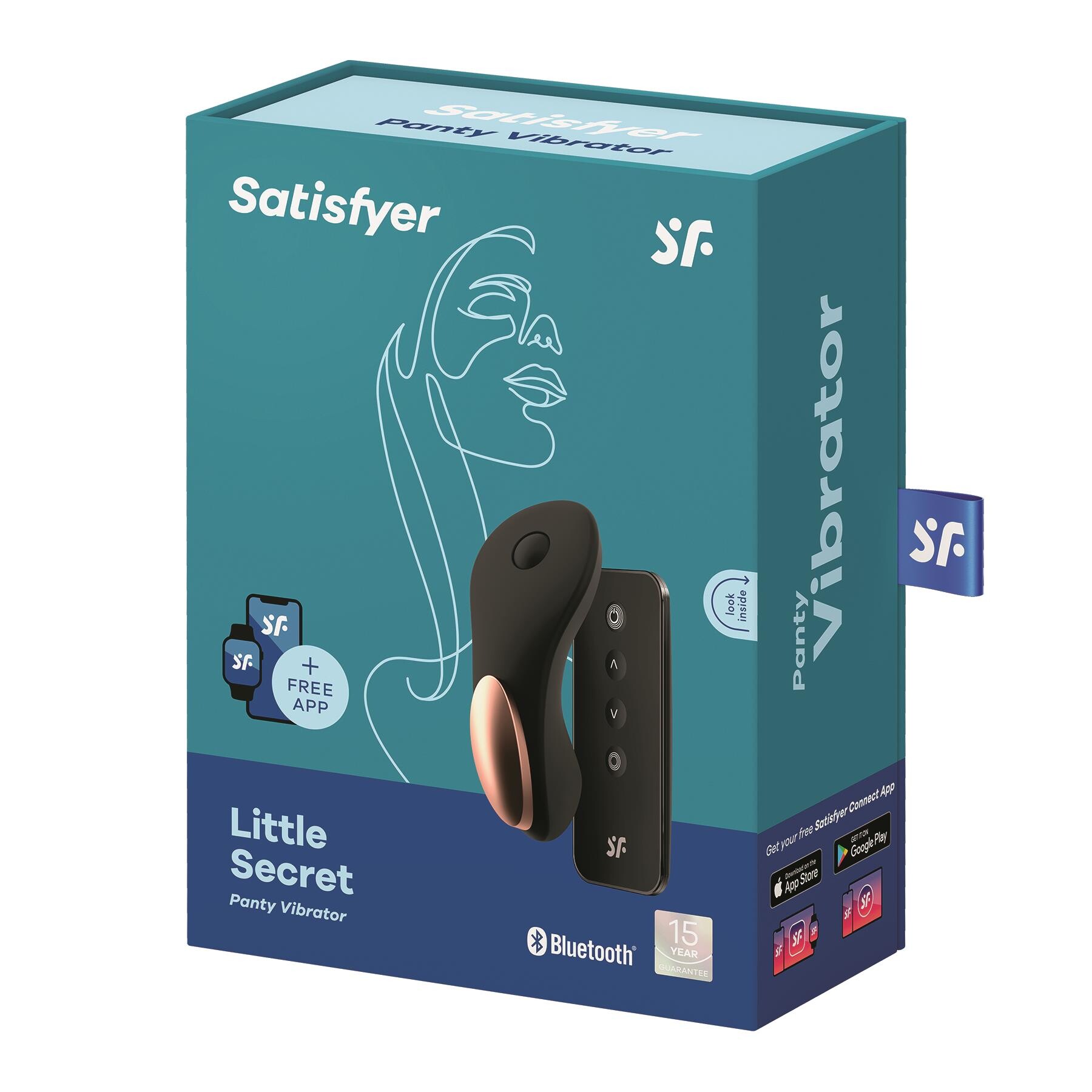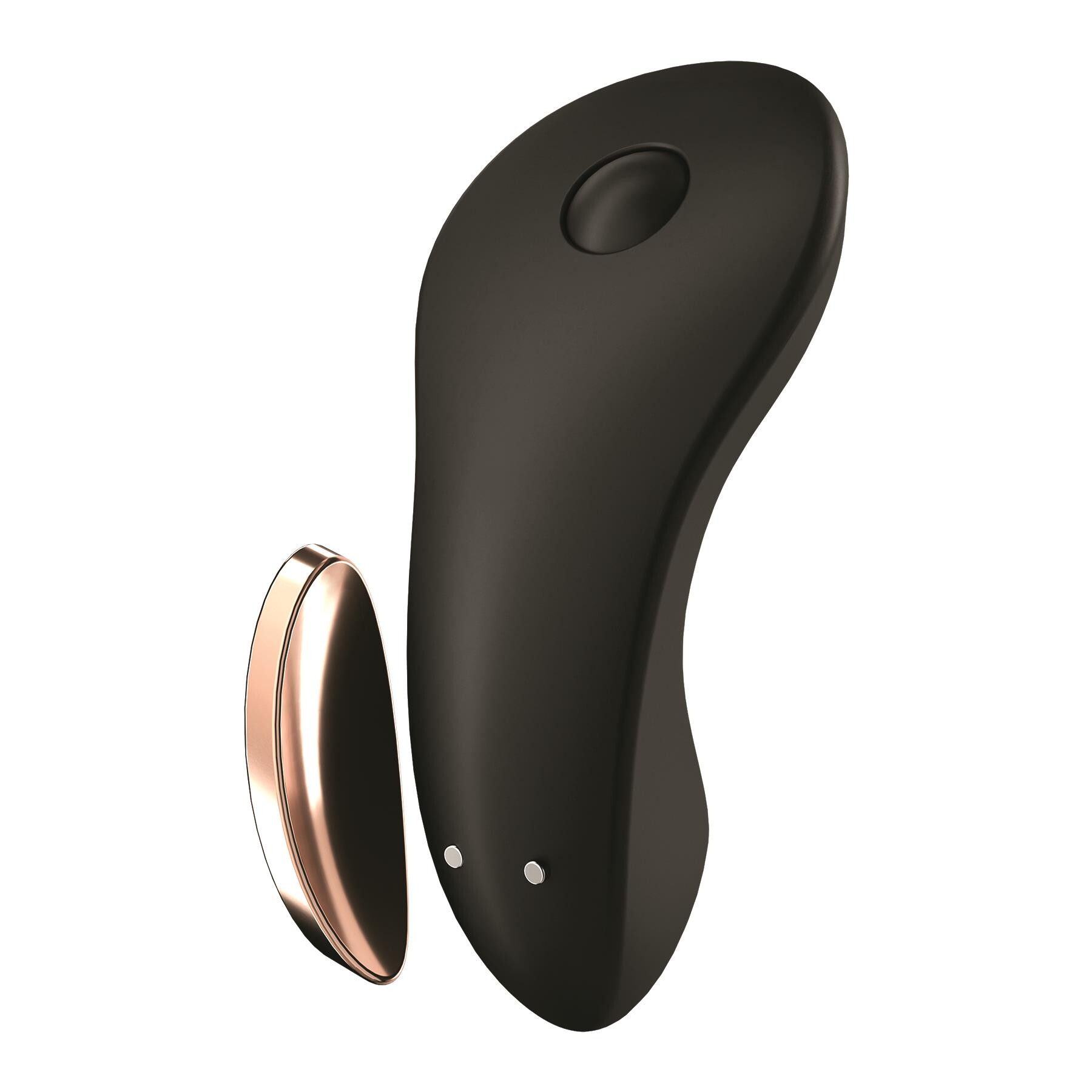 Enjoy an incredible buzz that’s all your secret! The Satisfyer Little Secret Panty Vibrator’s curvy, flexible shape fits your anatomy perfectly. A powerful magnet fastens it to your panties. Use the wireless remote control to tease with 11 incredible vibration functions. Or hand off the remote to your special someone and let them control the vibes from up to 30 feet away. You can also play long-distance with your phone using the Satisfyer Connect App! Waterproof vibe. 3 inches long remote; 3.25 by 1.5 inches vibe. Silicone. Rechargeable vibe, remote takes 1 CR2032 battery (included).