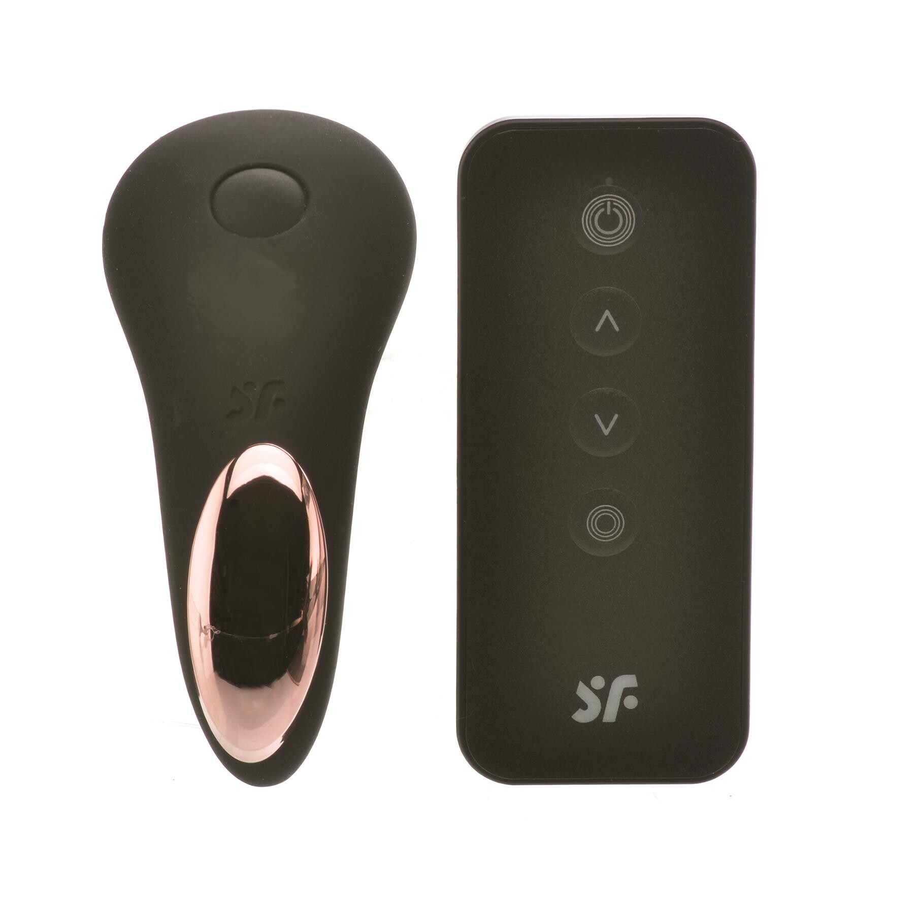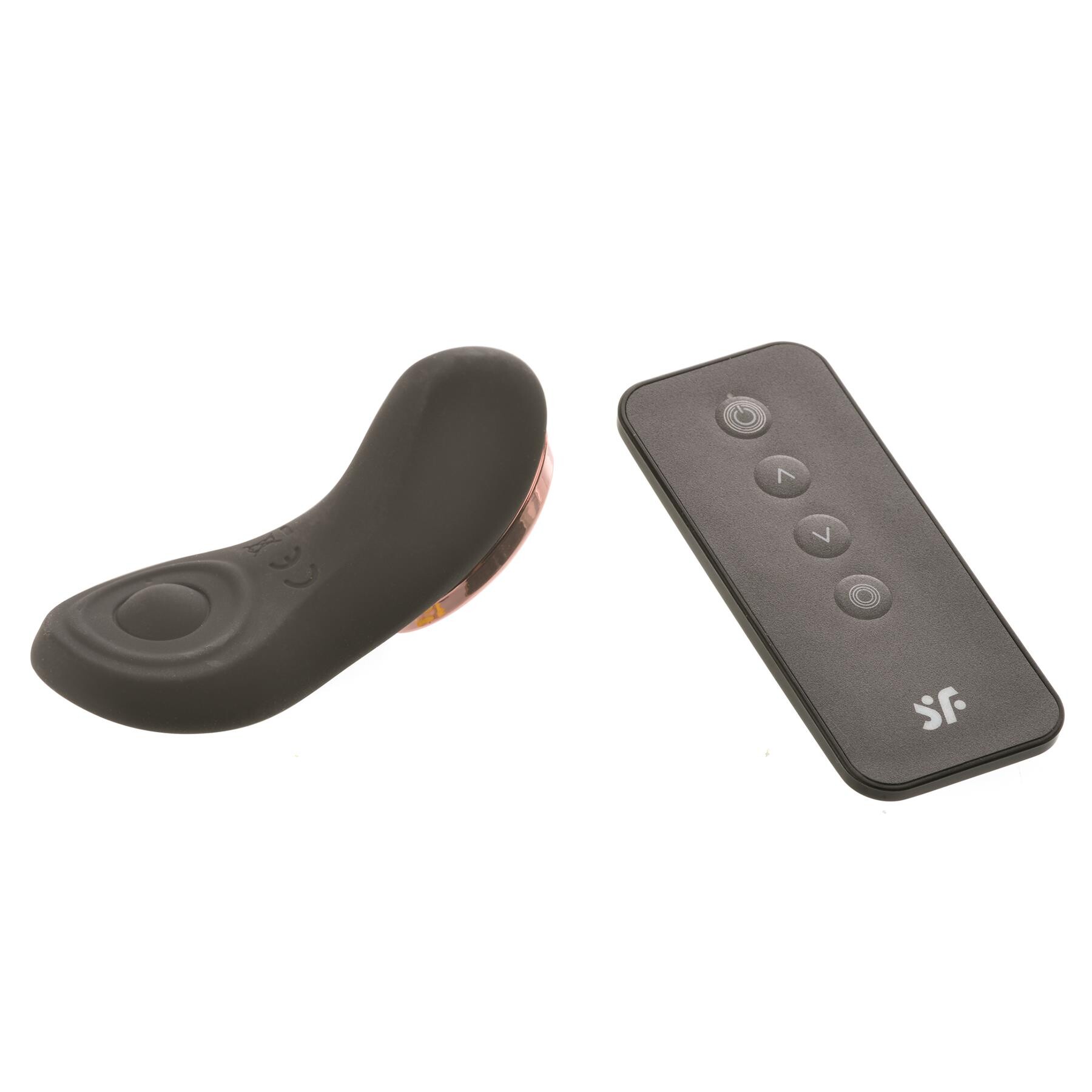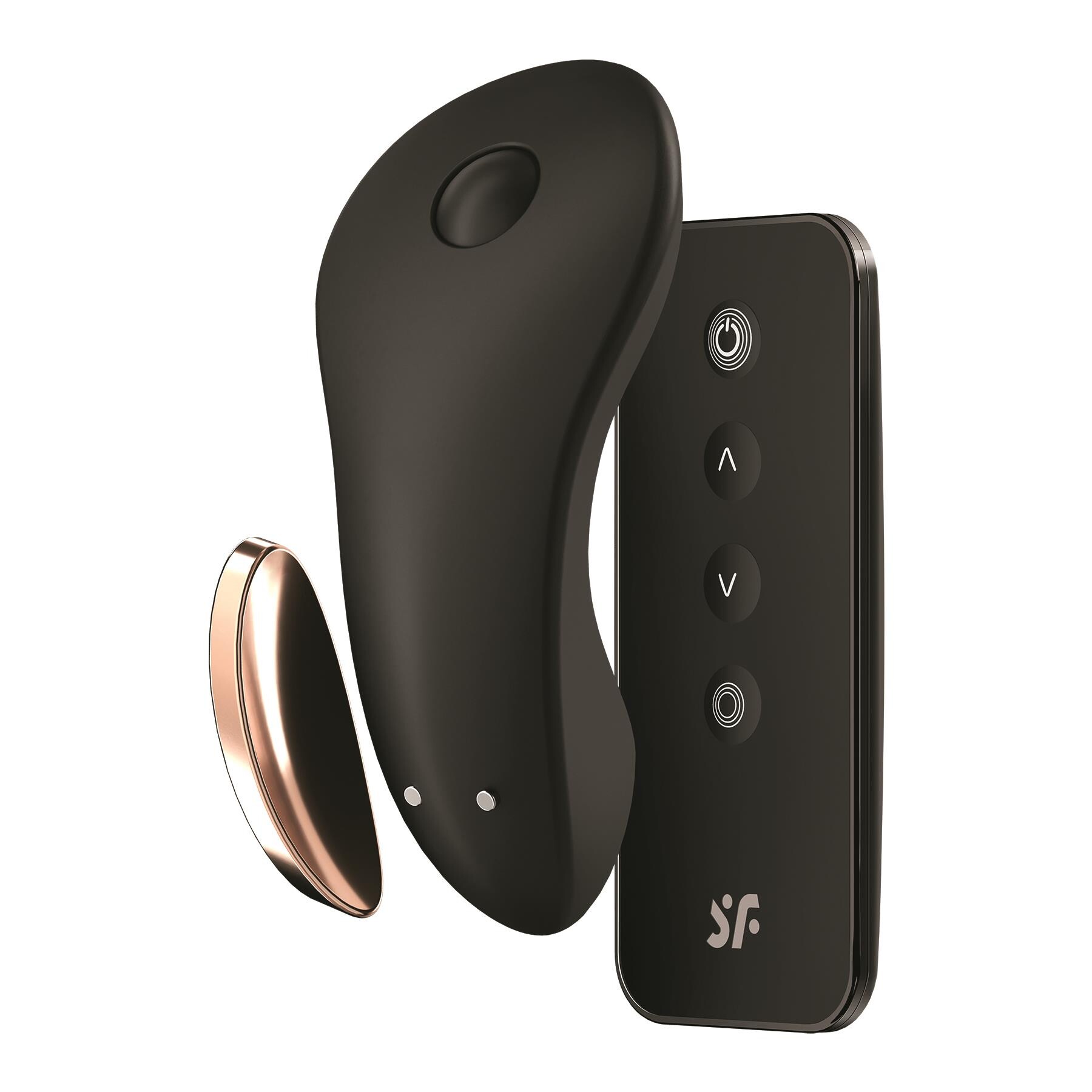 Enjoy an incredible buzz that’s all your secret! The Satisfyer Little Secret Panty Vibrator’s curvy, flexible shape fits your anatomy perfectly. A powerful magnet fastens it to your panties. Use the wireless remote control to tease with 11 incredible vibration functions. Or hand off the remote to your special someone and let them control the vibes from up to 30 feet away. You can also play long-distance with your phone using the Satisfyer Connect App! Waterproof vibe. 3 inches long remote; 3.25 by 1.5 inches vibe. Silicone. Rechargeable vibe, remote takes 1 CR2032 battery (included).