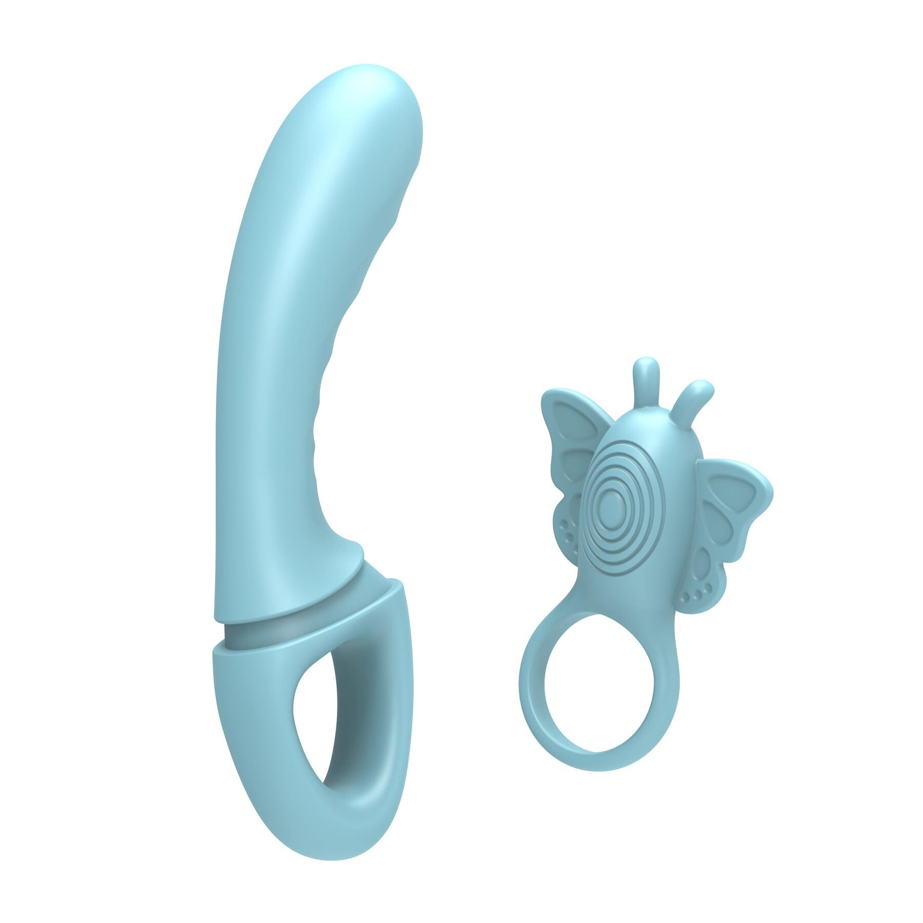 Get a couples toy that will keep you busy from foreplay to the Big O! The Butterfly Play Set is really 4 vibes in one. It comes as a rabbit-style vibe, complete with a vibrating G-Spot tip and vibrating butterfly clit stimulator. Each motor has 10 stimulating speeds and patterns for you to try. You can spice things up by removing the vibrating butterfly stimulator. Use it as a finger vibe or a penis ring for additional stimulation during foreplay or sex. And you can use the other as a G-Spot vibe for deeper penetration. Rabbit measures 7.5 by 3 inches total; 4.5 by 1.25 inches insertable. Made from plush liquid silicone. Rechargeable.