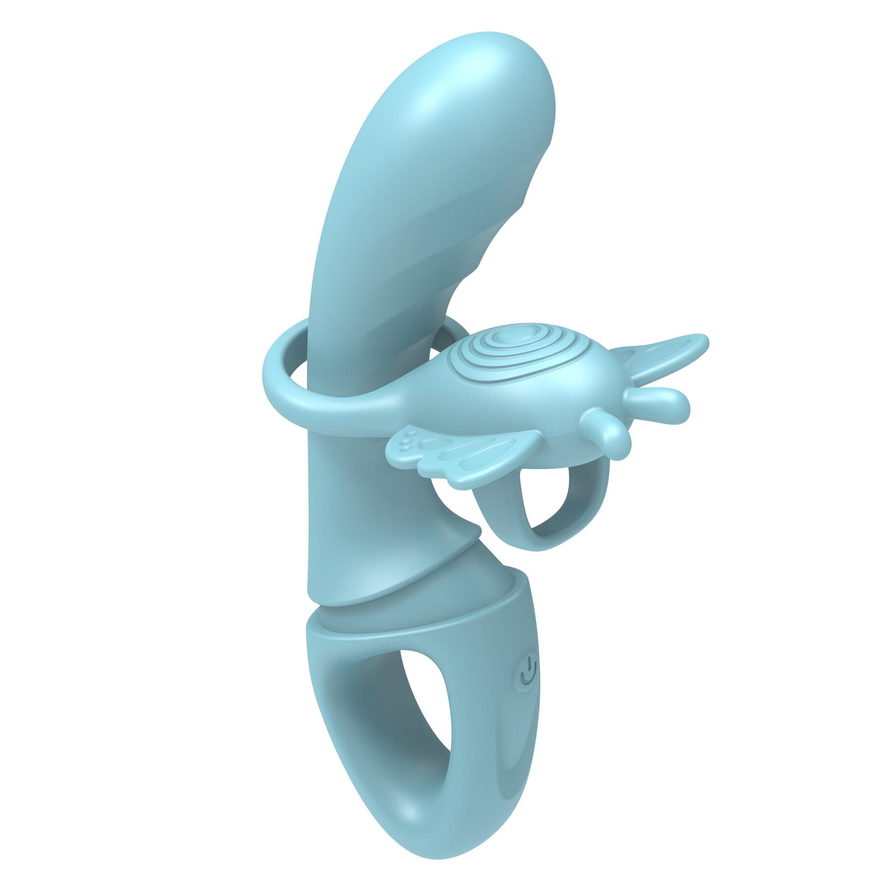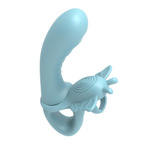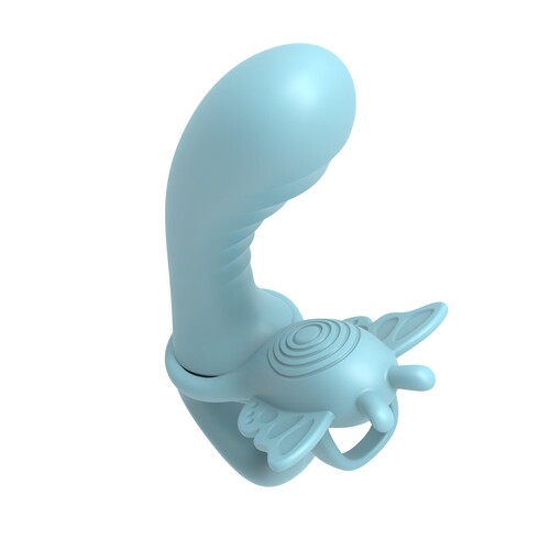 The Couples Butterfly starts off as a rabbit-style vibrator. Its curved tip is perfectly shaped for finding and thrilling your G-Spot. The butterfly stimulator rocks your clit with its antennae or body, while its fluttering wings tease your lips. This multi-stimulation has helped more than one woman reach the Big O, and it might be just what you need!