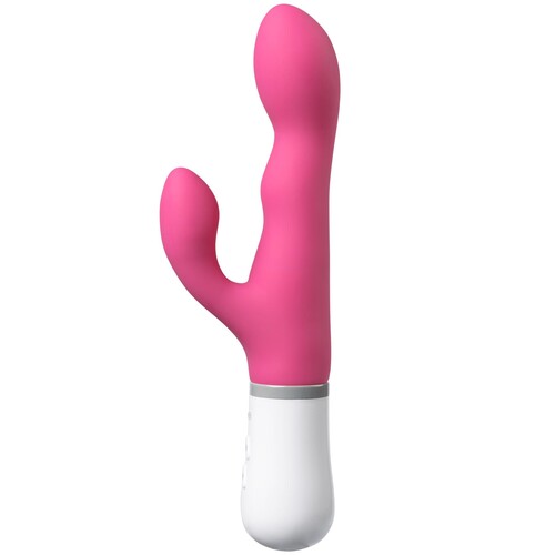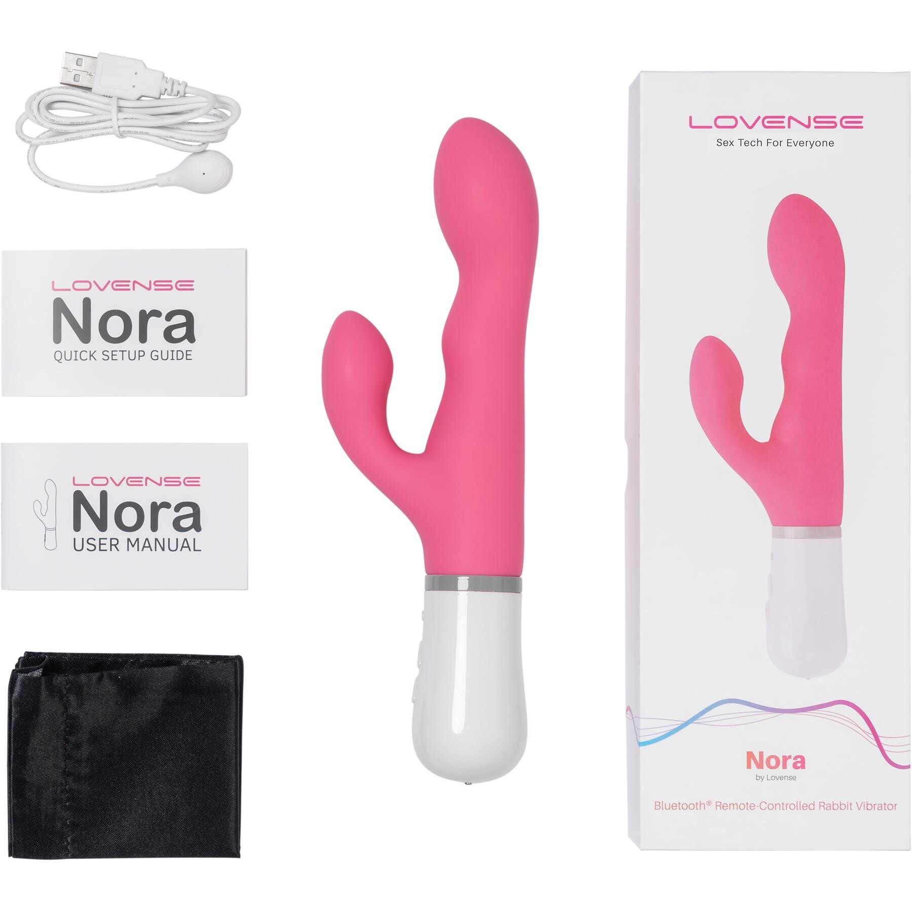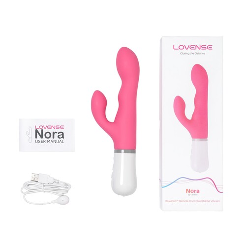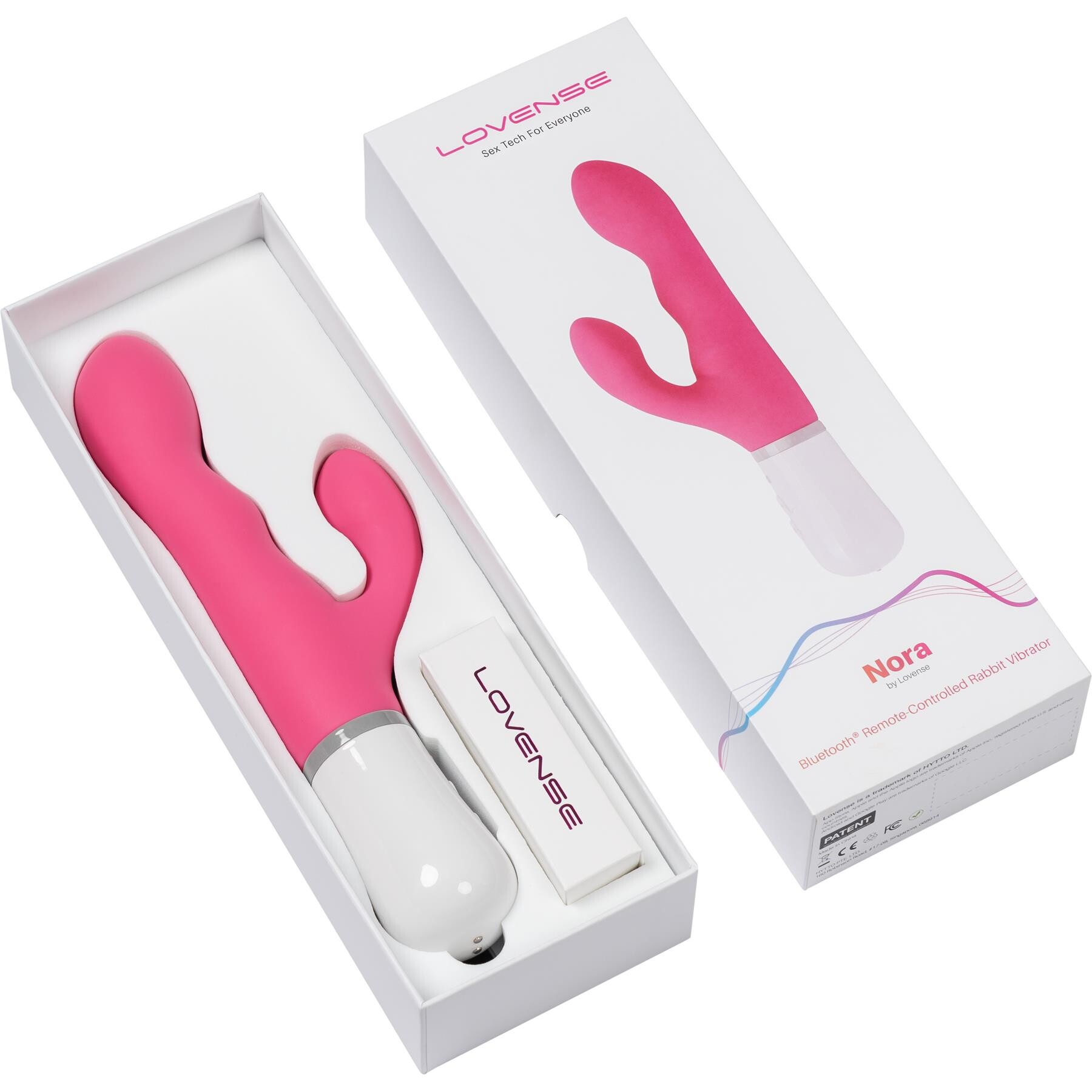 With a rotating tip, powerful clit vibrator & versatile app, the Nora Rabbit will leave you moaning & groaning in no time! This bad bunny works your G-Spot with a 3-speed rotating curved tip. It tickles your love nub with an extra-powerful 7-mode vibrating stimulator. Both are controlled separately – giving you 21 possible pleasure combinations. Use the free Lovense Remote App to control stimulation settings from the same room or around the world. Measures 9.5 by 1.5 inches total; 4.75 by 1.5 inches insertable. Silicone & ABS plastic. Rechargeable.