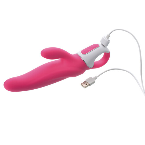 With dual motors and multiple pleasure settings, this vibe will make you scream! Mister Rabbit from Satisfyer targets multiple erogenous zones at the same time - making it much easier for you to the reach the Big O. The fun starts with the G-Spot tip. It has its very own vibrating motor for maximum stimulation! The smooth, flexible shaft naturally hugs your inner curves for a great feel. A clitoral stimulator works your love nub with a second motor for blended pleasure and 'gasms! Its 12 vibration speeds and patterns will keep you on the tips of your toes! Waterproof. Insertable shaft measures 5 by 1.25 inches. Made from silicone with an ABS plastic handle. Rechargeable.
