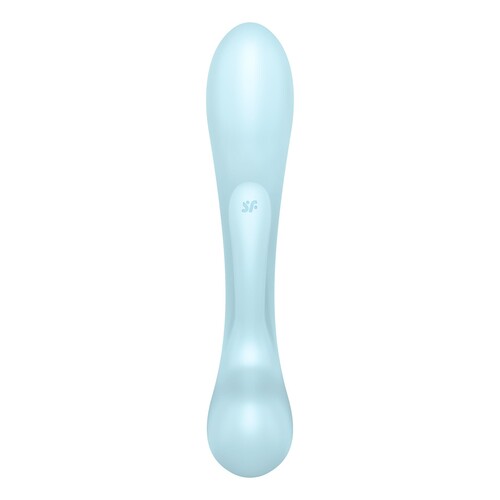 Start with a massage and end in powerful pleasure! This 2-in-1 toy looks like a traditional rabbit vibe but hides a sexy surprise. The base has its own independent motor that works to deliver targeted sensation or all-over massage! The rounded massage head is great for working tired muscles. Warm up with seductive massage, then flip the toy. Let that wide, rounded shaft thrill your G-Spot while the rabbit stimulator excites your clit. The shaft and rabbit arm both have their own dedicated motor, so you feel powerful rumbling on both of your sweet spots! Choose from 12 massaging vibrations & 12 rabbit modes for over 100 sensual combinations. Body-friendly silicone. Waterproof. Rechargeable, runs up to 40 minutes. 9.5 by 2.25 total inches. 5.5 insertable inches.
