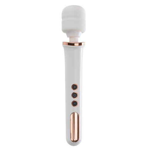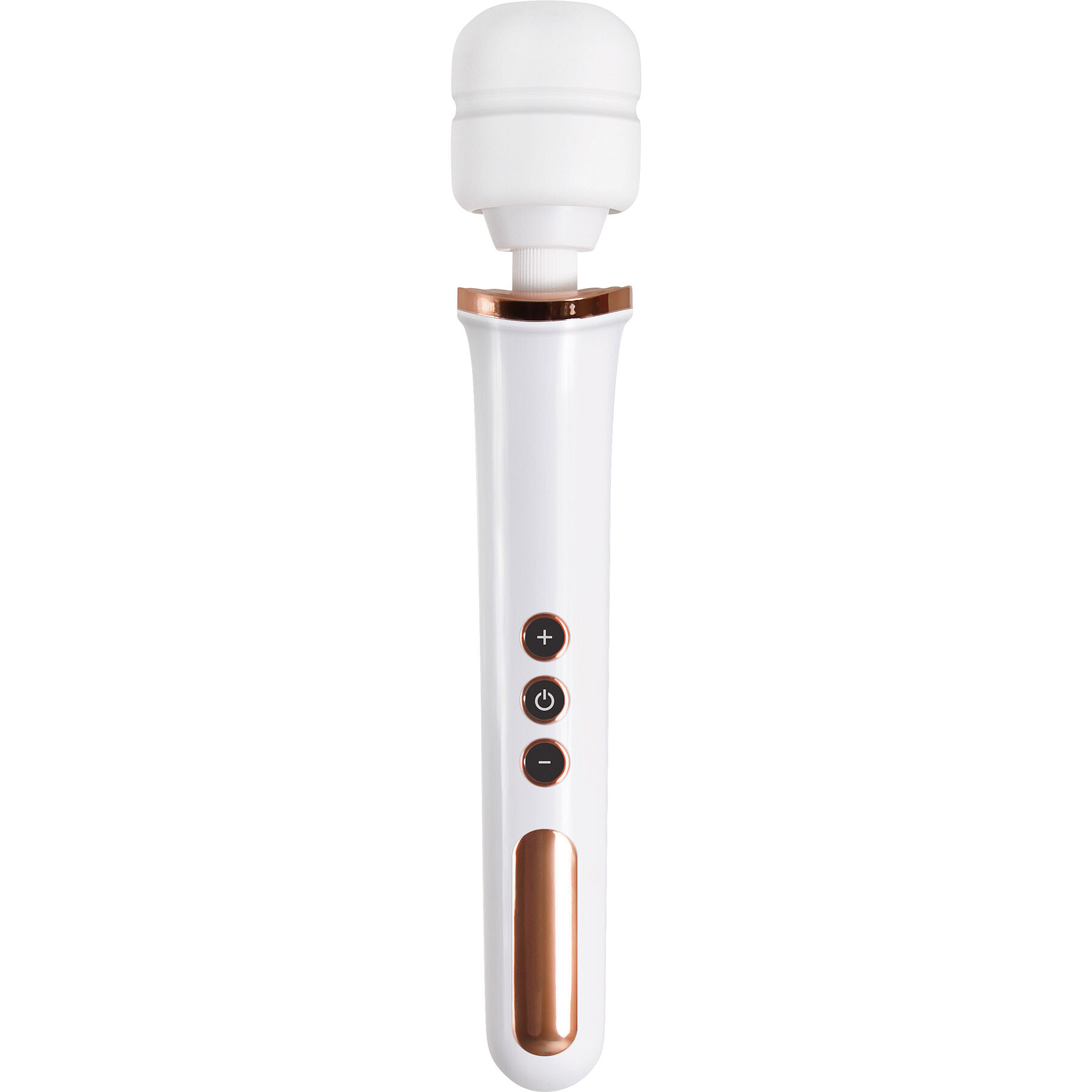 This upgraded version of our best-selling rechargeable wand features more body-shaking power and a beautiful new look. And it keeps the same ultra-strong rumbling vibrations and cordless design that made the original so popular! The new & improved Rose Gold Magic Massager features 10 vibration patterns, each with 5 speeds. That adds up to 50 possible vibration combinations. Its stylish new design features a notched head and rose-gold accents in the handle. The massaging head moves with your curves to deliver focused power. Its discreet design blends in perfectly, so it looks nothing like your typical sex toy. Measures 13 by 2.25 inches. Made with a silicone massaging head and ABS plastic handle. Rechargeable.