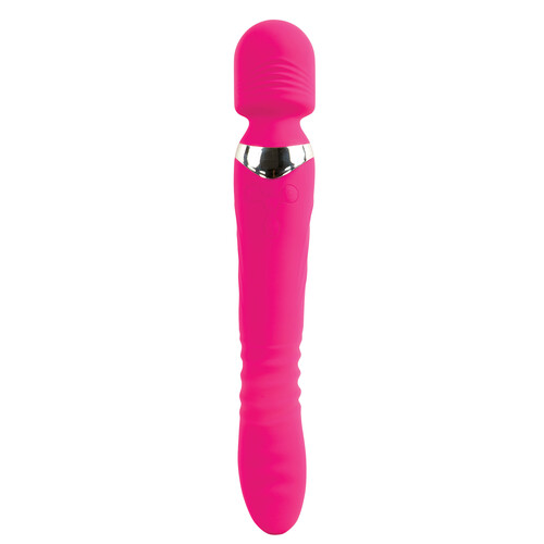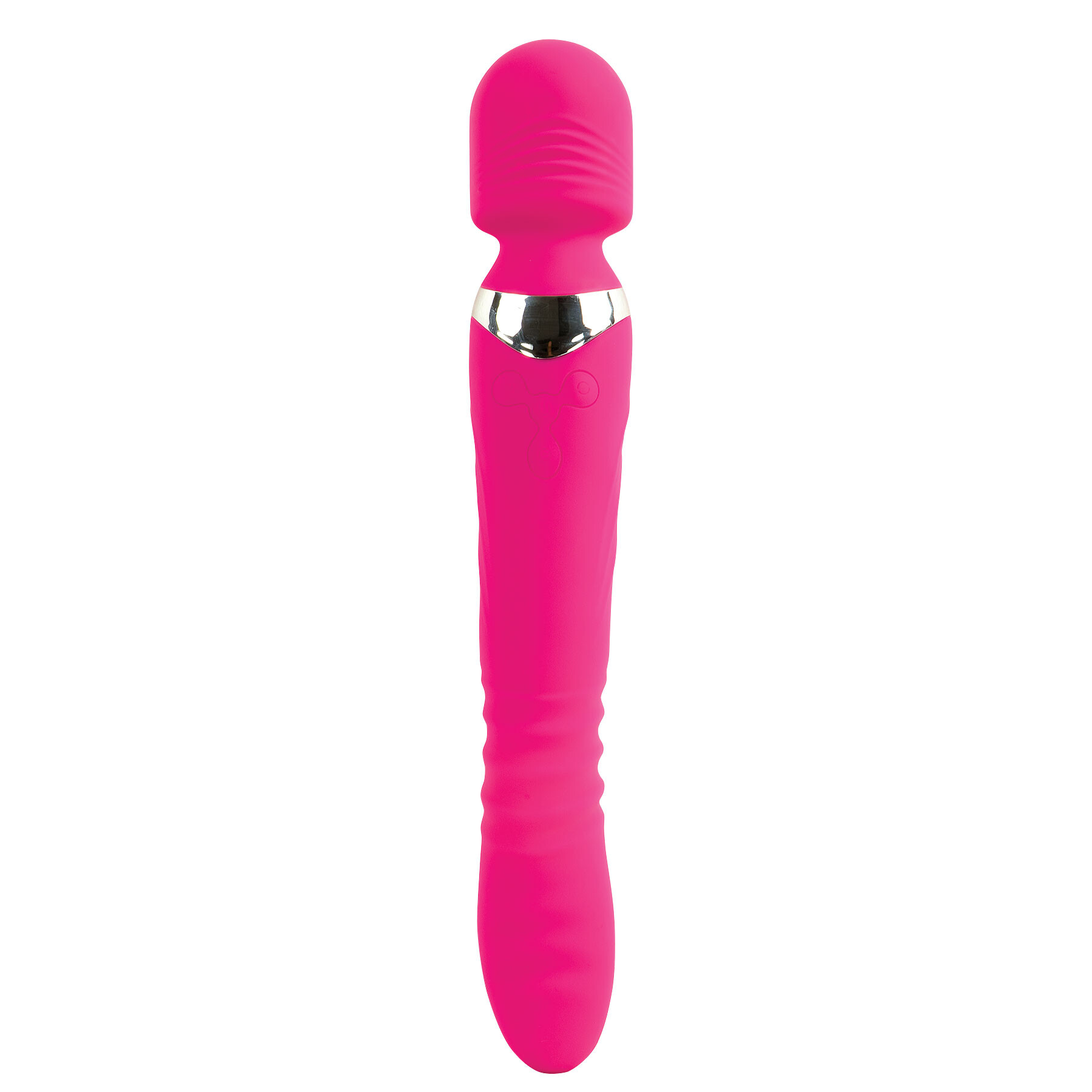 There's fun at each end of this thrusting wand massager. It really is like having 2 toys in one –– all you have to do is flip it around! The head delivers 7 total functions of intense speed and pulsation to all your hot spots. Or turn it around and let its thrusting, rotating, and vibrating tail thrill your deepest pleasure centers! Waterproof. 10.75 inches total length; 6 by 1.5 inches insertable; 1.75 inches wide wand head. Silicone. Rechargeable.