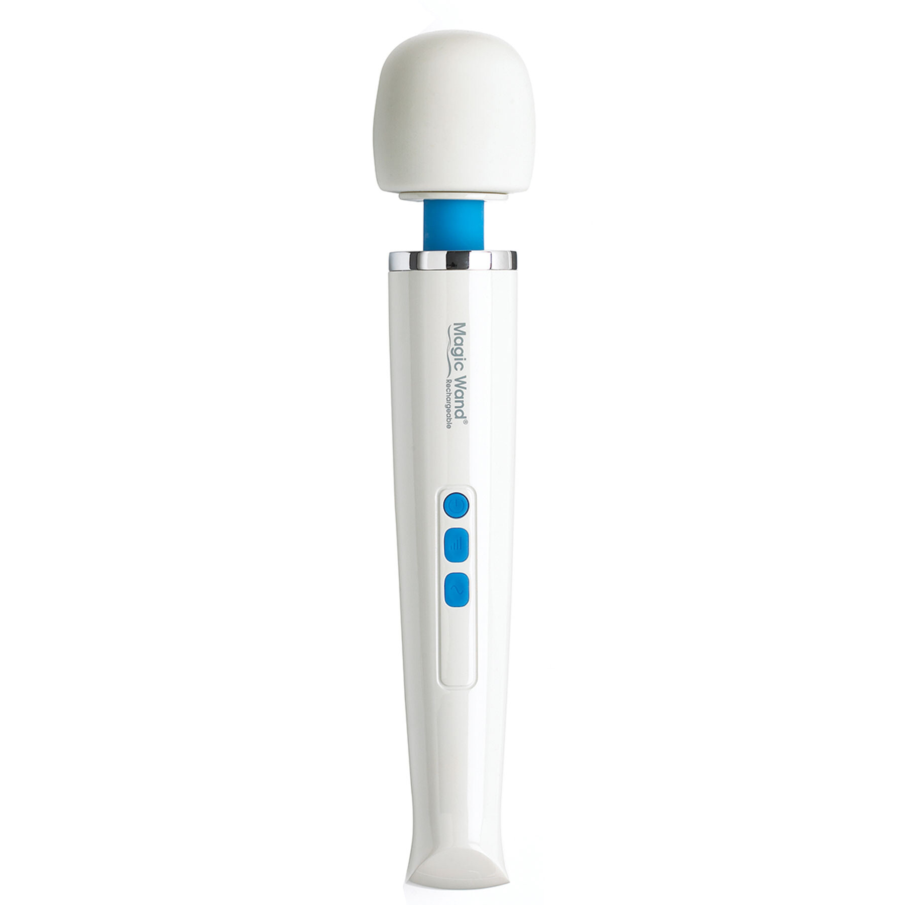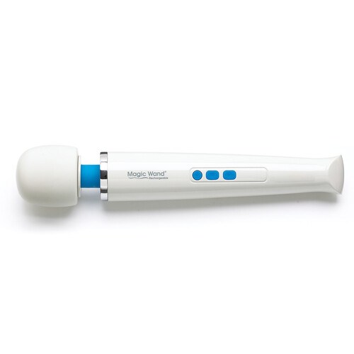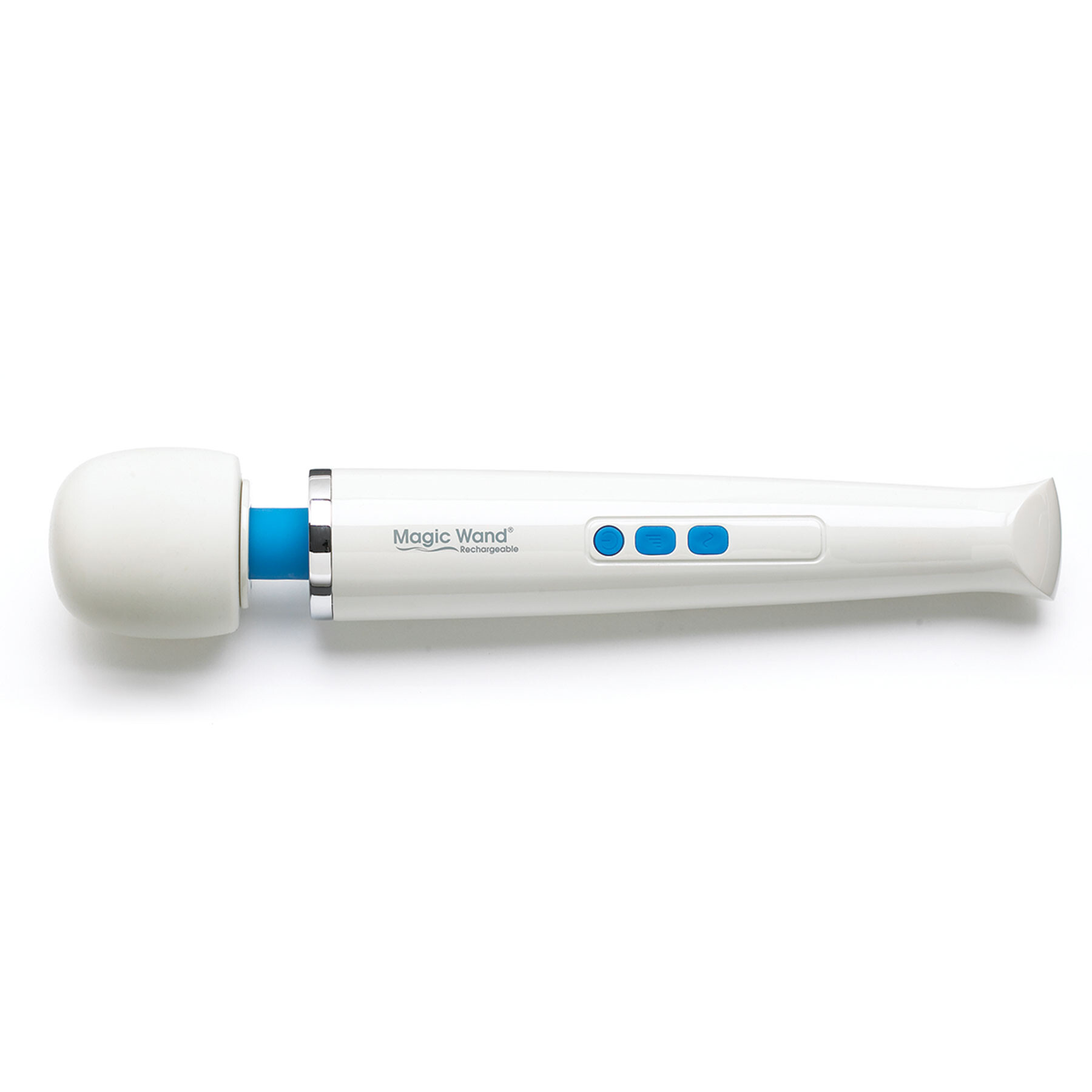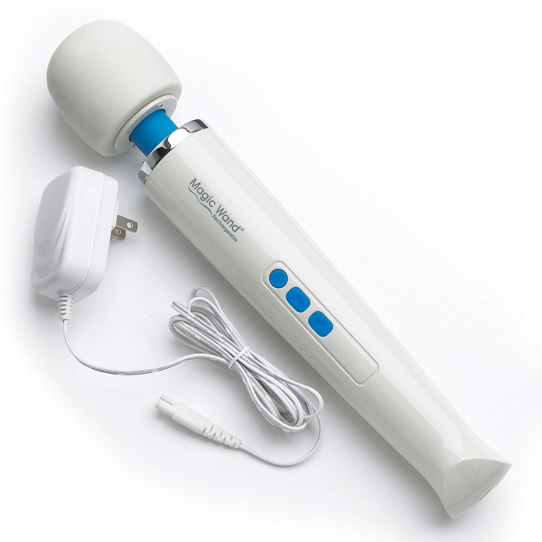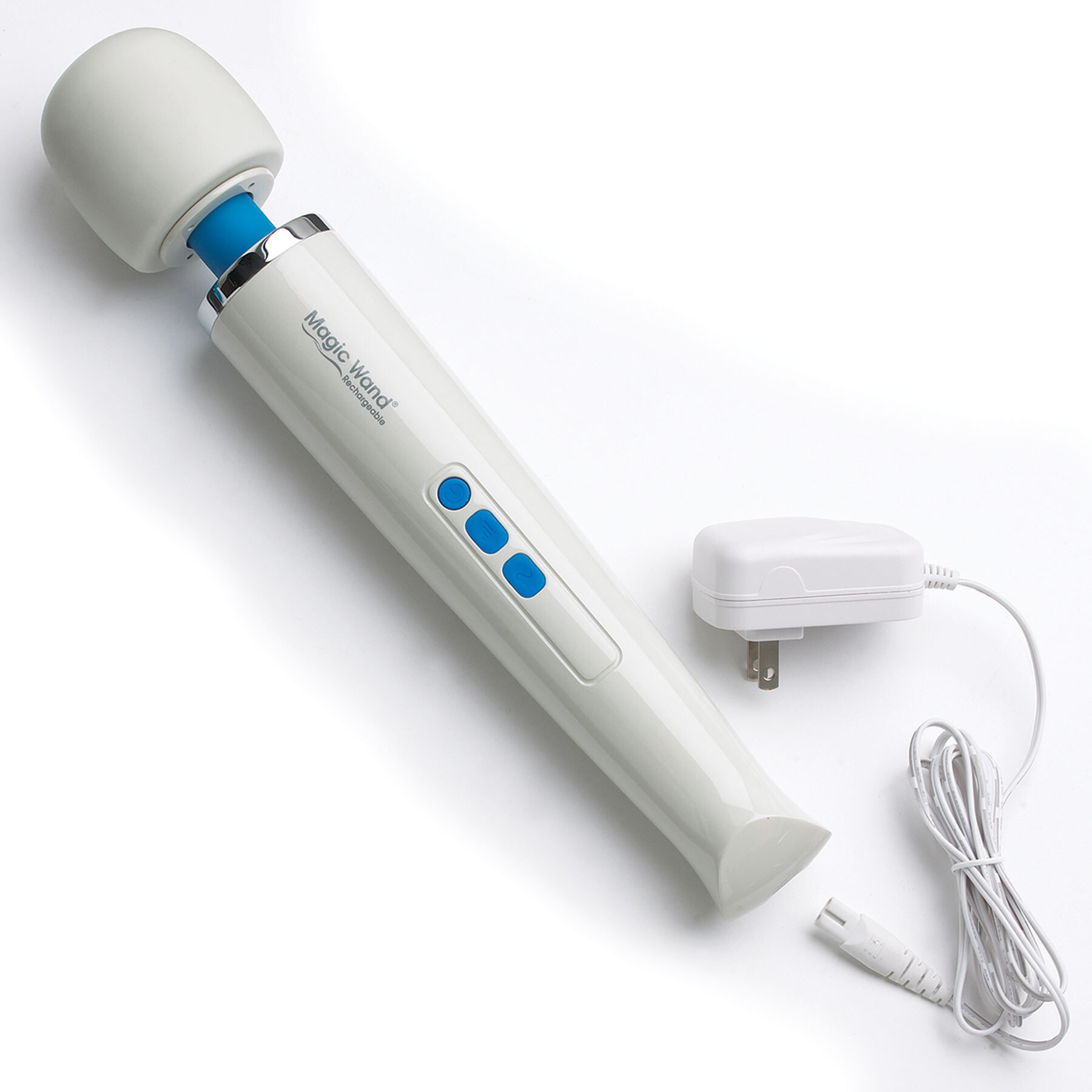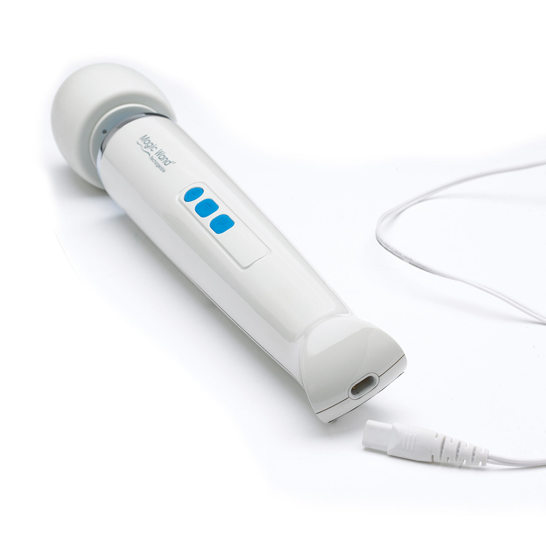 We freed the Magic Wand from its electrical cord for the first time in 30 years while keeping the same body-rocking power you love! It features 8 different stimulation modes, including 4 vibration speeds and 4 patterns for a wide range of sensations. The massaging head moves with your curves to deliver focused power wherever you want it. Its discreet design blends in perfectly, so it looks nothing like your typical sex toy. Compatible with most wand attachments. The head measures 2 inches long by 2 inches wide. Overall wand is 13 inches long by 2.5 inches wide. The massaging head is firm silicone, and the handle is ABS plastic. Rechargeable.