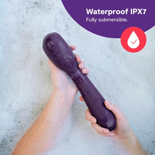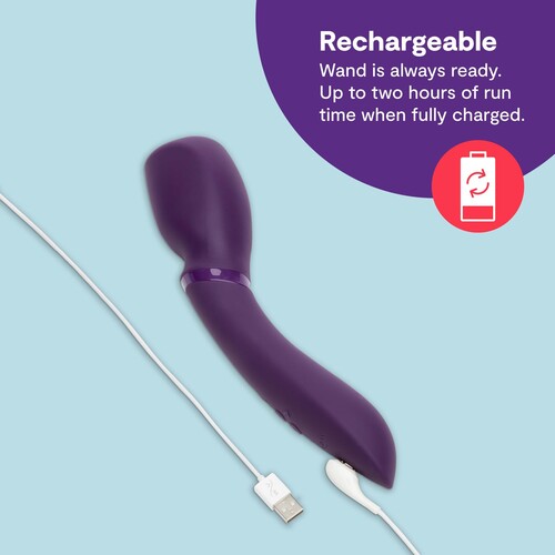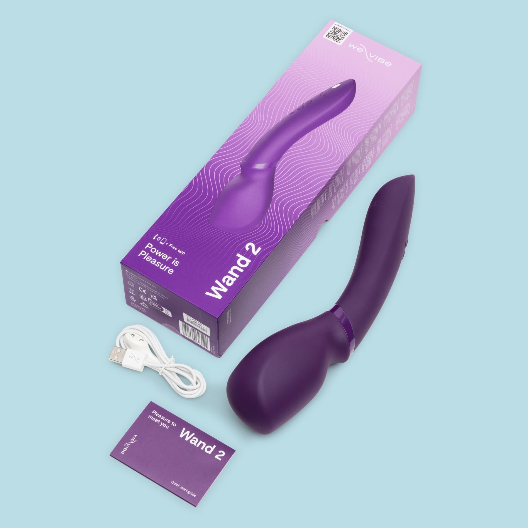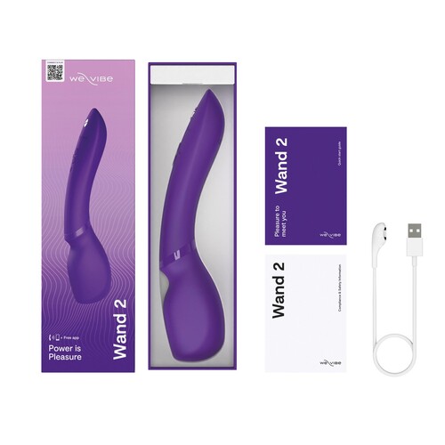 Shopping for a wand? You need something strong with deep rumbling vibrations. Cordless so you can play any way you like. A flexible neck so you can find the right angle in any position. The WeVibe Wand 2 has all that and more! 10 vibration intensities start strong and erupt into intense rumbles. Let patterns and pulsations work you into ‘gasmic pleasure. If you’re always looking for the most powerful toy – you found it! You can even control your toy with the FREE WeVibe app. Play long-distance or together at home. The broad head tapers for widespread massaging or pinpoint stimulation. Great for full body massage, partner play or steamy solo sessions. Rechargeable, runs up to 120 minutes. Whisper quiet. Waterproof. Silicone. 10.5 by 2.5 inches.